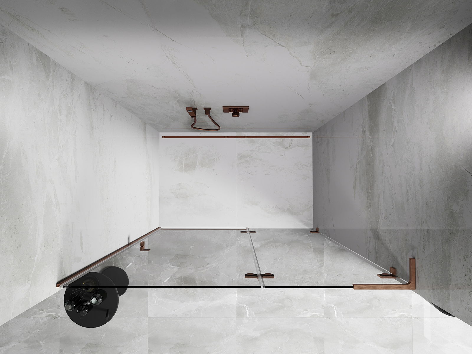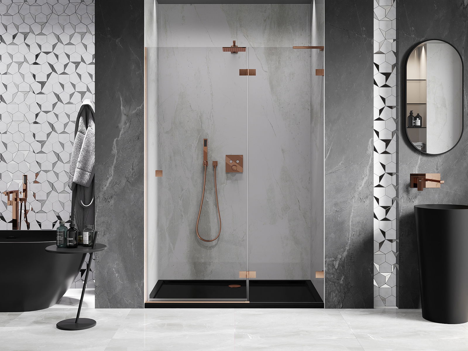 Mexen Lunar L sprchové dveře pravé 140 cm, transparentní, kartáčovaná měď - 834L-140-000-65-00-P