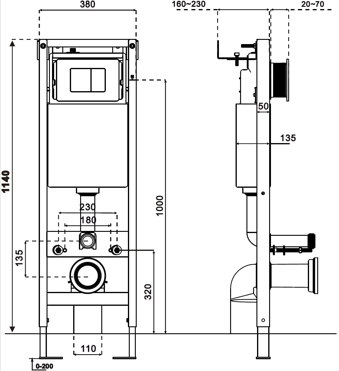 Možnost nastavení výšky rámu umožňuje lepší přizpůsobení různým technickým podmínkám v koupelně. Flexibilní rozsah regulace zajišťuje pohodlnou montáž a dosažení optimální výšky rámu.