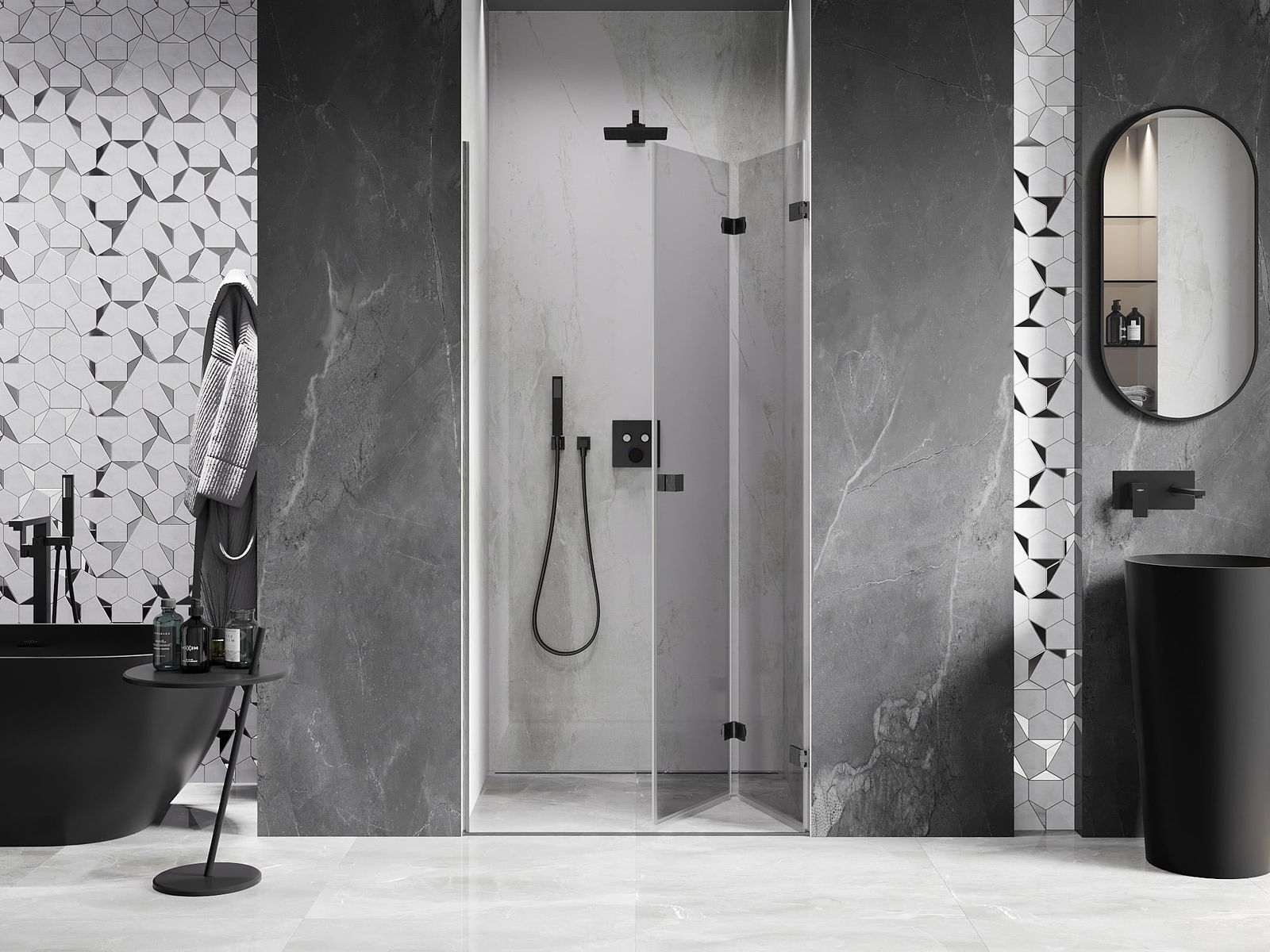Možnost skládání dveří, jak dovnitř, tak ven, umožňuje získat více prostoru při nepoužívání sprchy. Je to ideální řešení pro menší koupelny, maximálně využívající dostupný prostor.