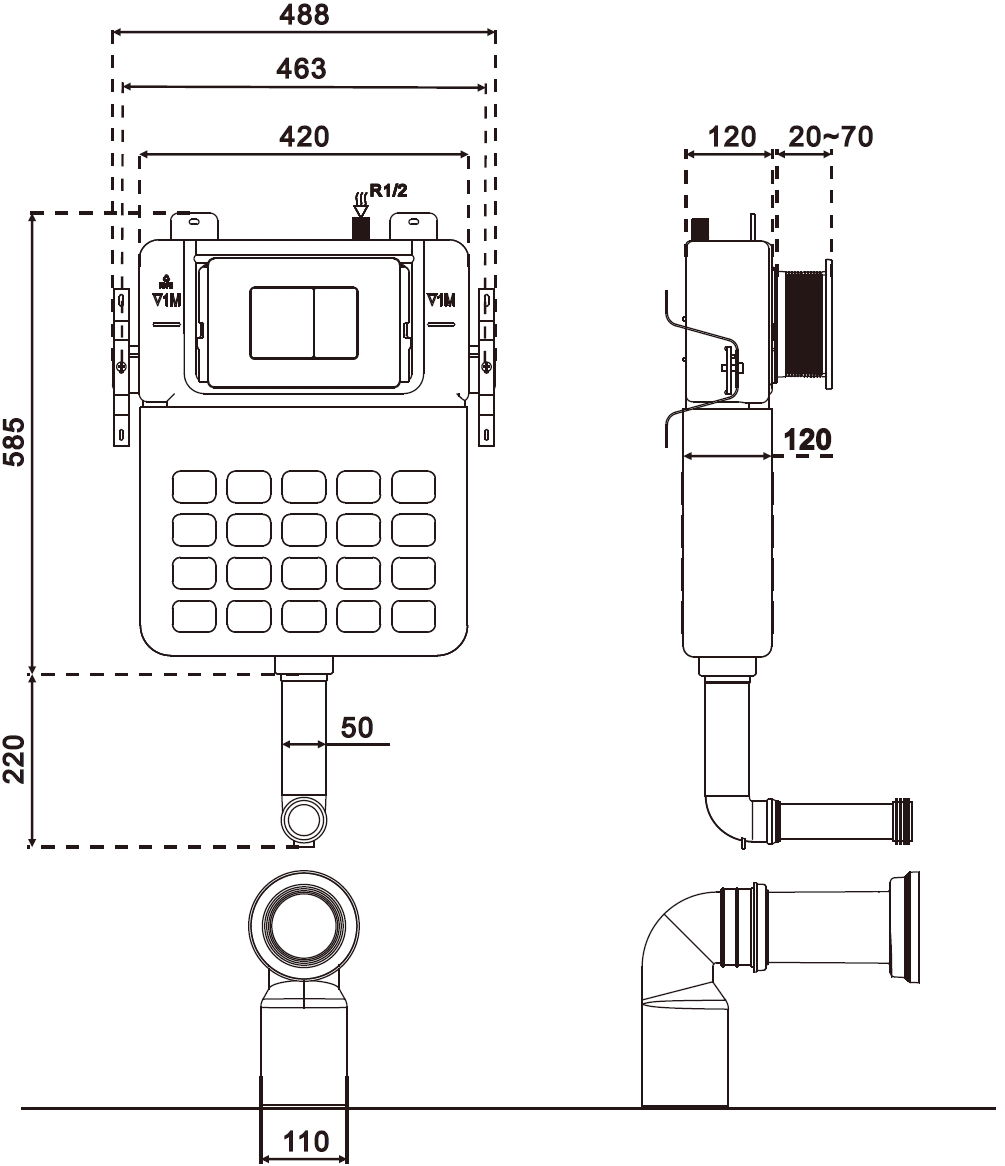 Produkt má nastavitelné odtokové koleno, které umožňuje snížení hloubky montáže. Tato funkce umožňuje snadné přizpůsobení produktu různým odtokovým otvorům dostupným v koupelně, a zajišťuje tak přesnou montáž.