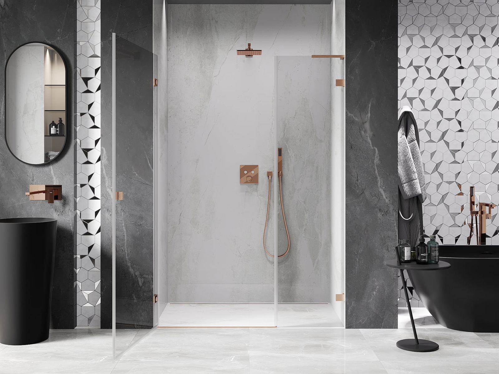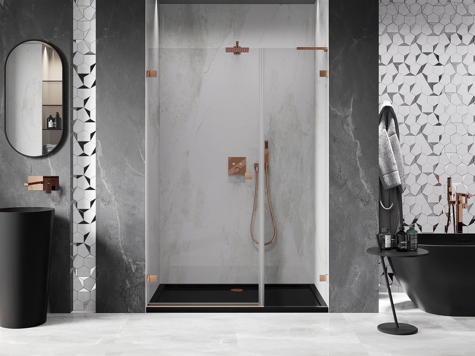 Mexen Lunar-B L sprchové dveře otočné levé 135 cm, transparentní, kartáčovaná měď - 832SL-135-050-65-00-L