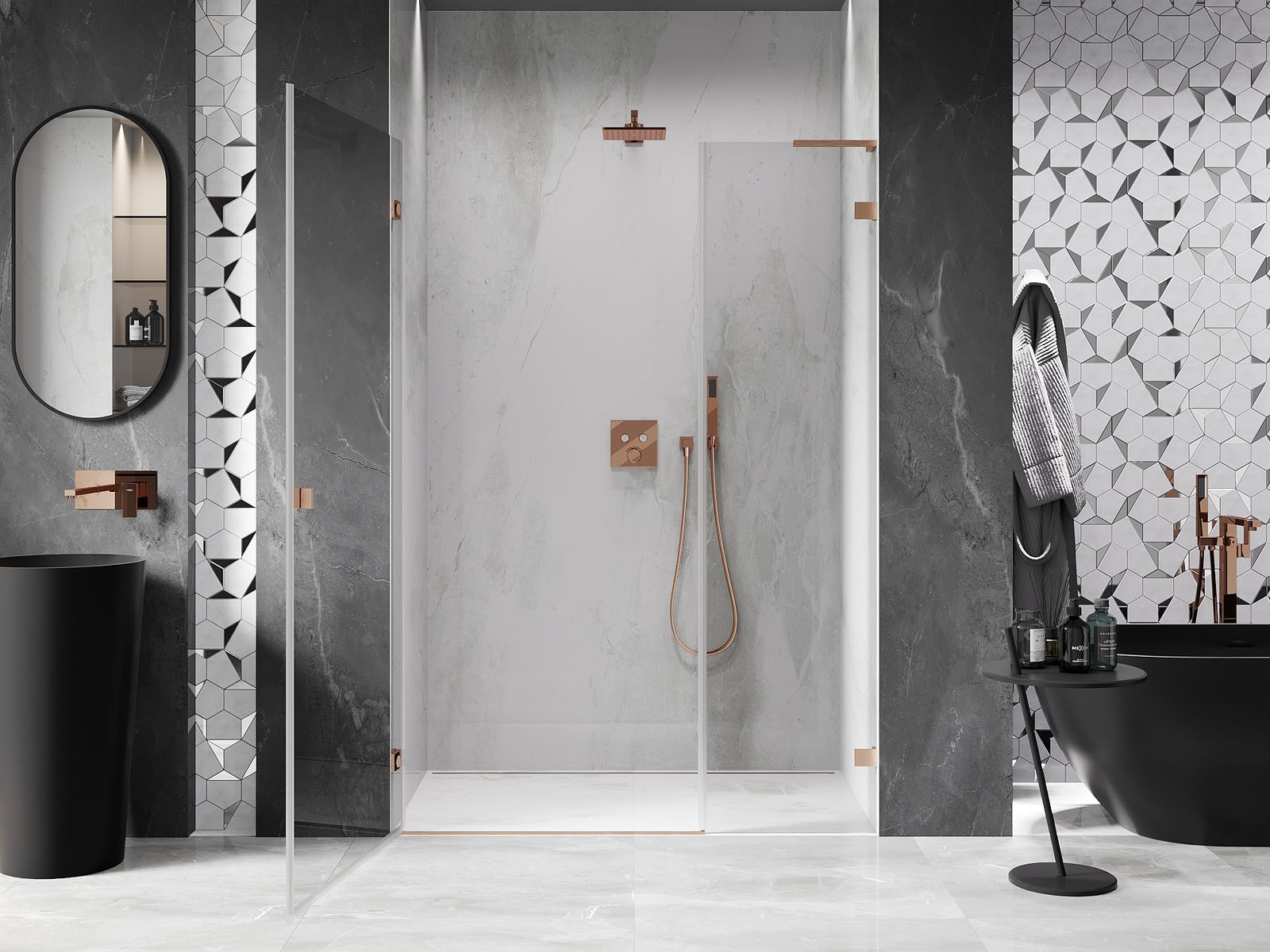 Mexen Lunar-B L sprchové dveře otevírací levé 145 cm, transparentní, kartáčovaná měď - 832SL-145-050-65-00-L
