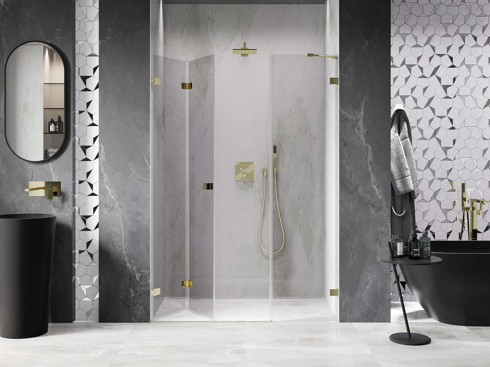 Mexen Lunar-F sklopné sprchové dveře levé 110 cm, transparentní, zlaté - 836S-110-050-50-00-L