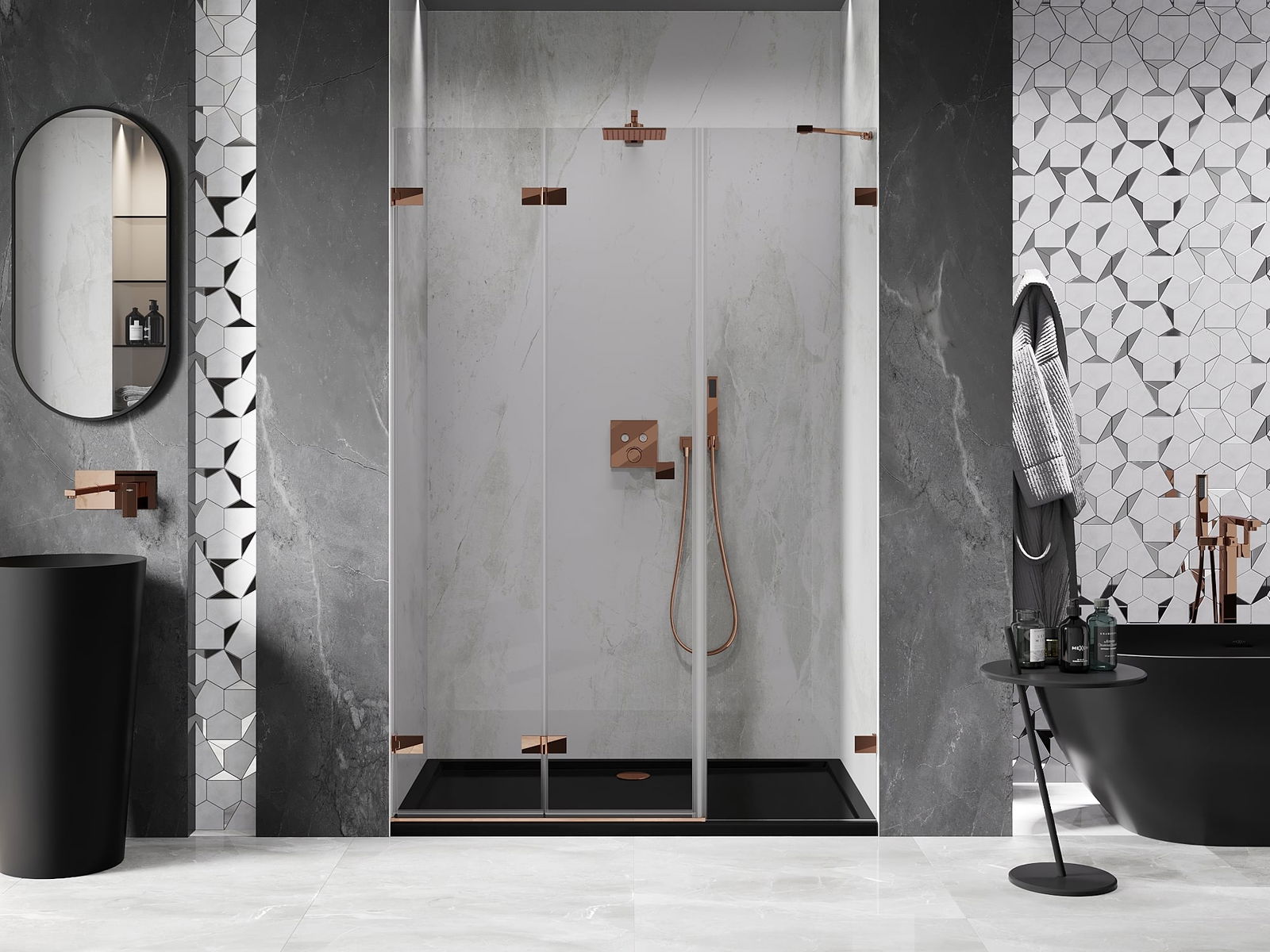• Mexen Lunar-F skládací sprchové dveře levé 110 cm, transparentní, růžové zlato - 836S-110-050-60-00-L