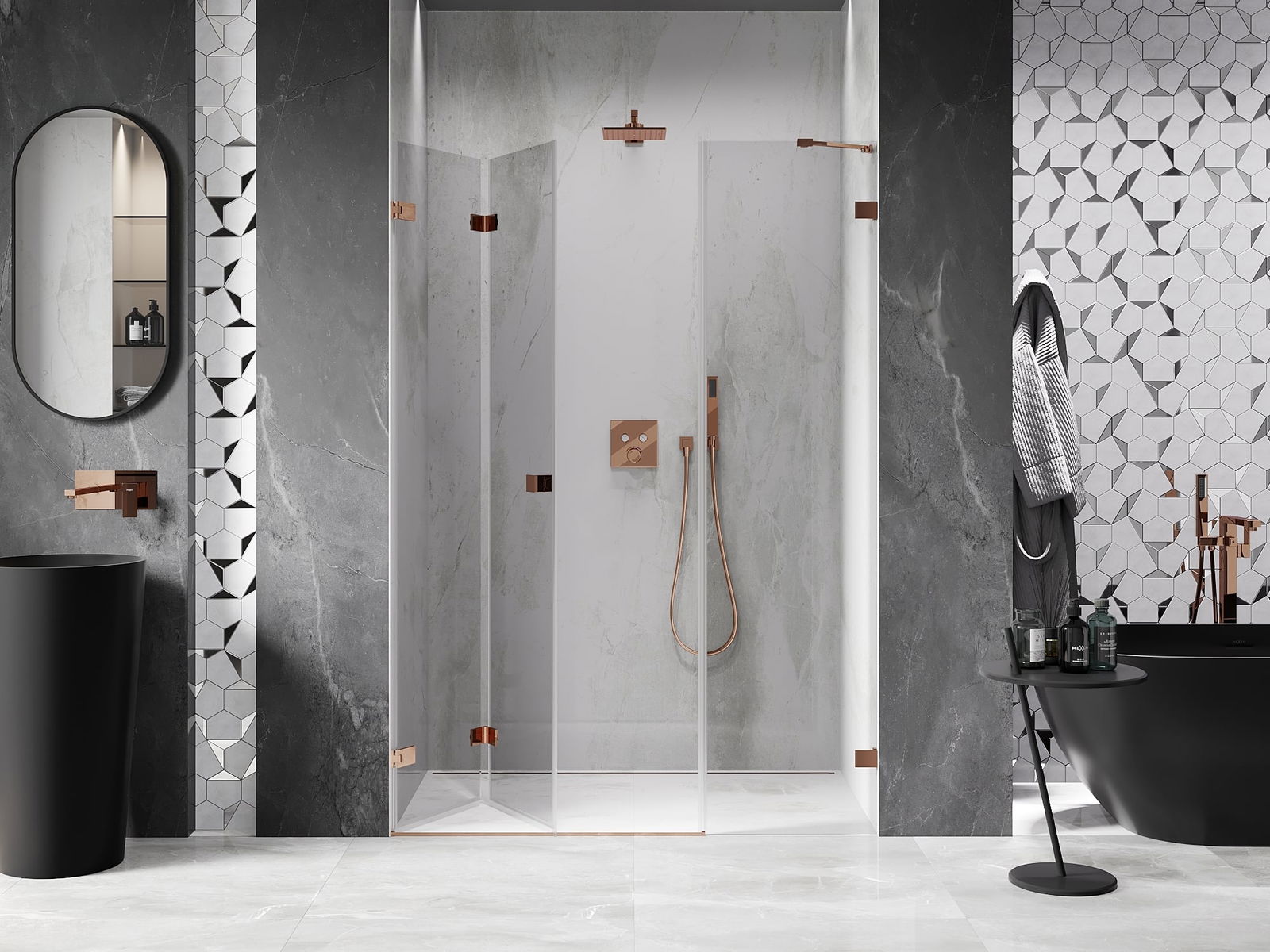 Mexen Lunar-F skládací sprchové dveře levé 110 cm, transparentní, růžové zlato - 836S-110-050-60-00-L