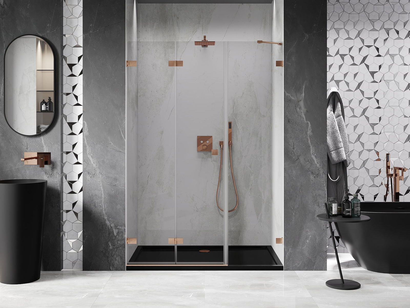 Mexen Lunar-F sklopné sprchové dveře levé 150 cm, průhledné, kartáčovaná měď - 836S-150-050-65-00-L