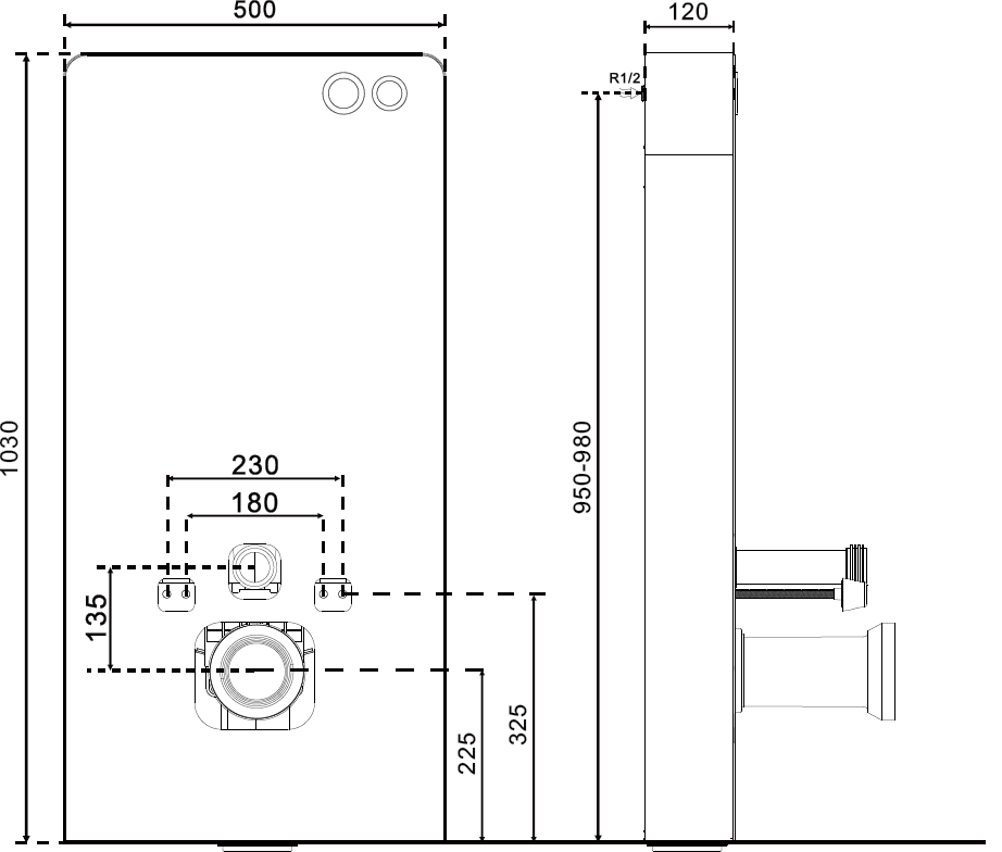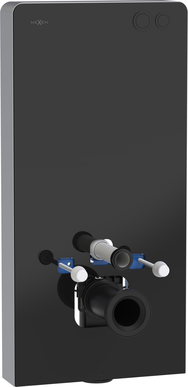 Mexen Tex Air G je elegantní nástěnný rám s výjimečným designem, ideální pro moderní interiéry. Díky skleněnému, tvrzenému přednímu krytu v černé barvě a kartáčovanému hliníku po stranách se rám dokonale hodí k různým stylům koupelen. Produkt s rozměry 103 cm výšky, 50 cm šířky a 12 cm tloušťky je vybaven pneumatickým splachovacím tlačítkem, umožňujícím regulaci množství vody (3/6 L). Je univerzální, hodí se pro závěsné i stojící mísy (otvory 18 nebo 23 cm), což z něj činí vynikající volbu pro různorodá řešení v koupelně.