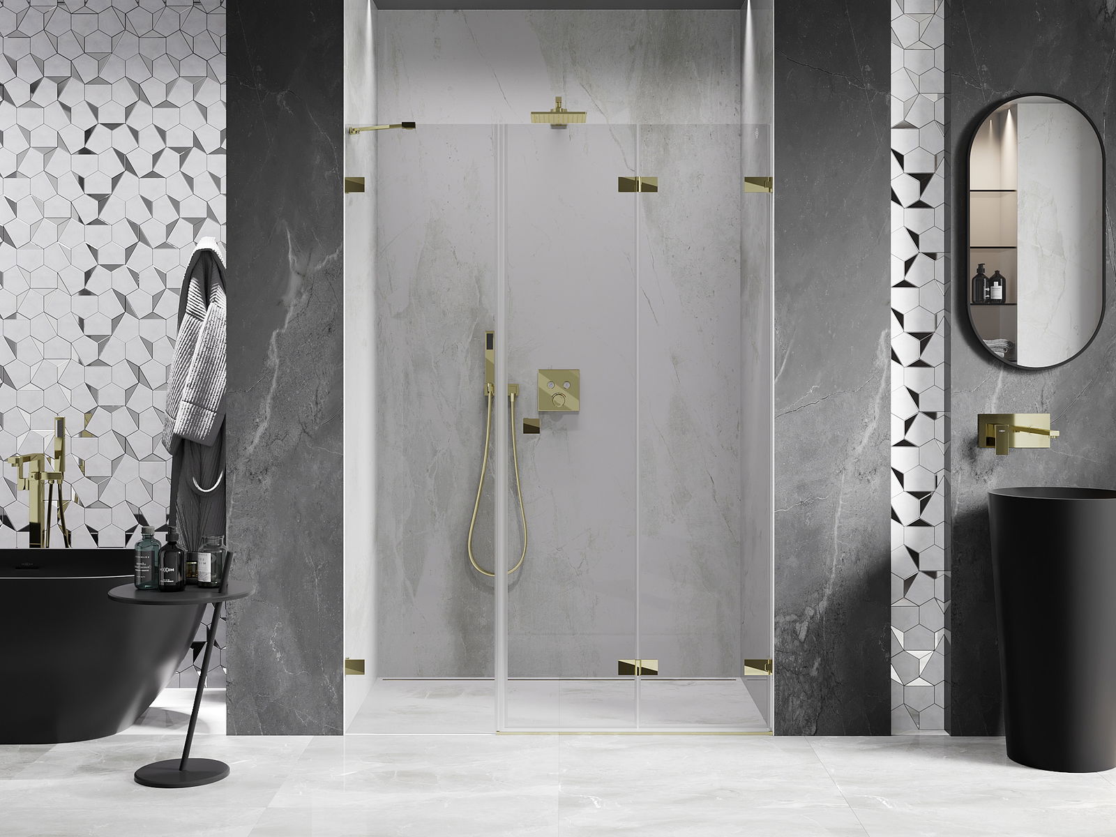 Mexen Lunar-F sprchové dveře skládací pravé 110 cm, transparentní, zlaté - 836S-110-050-50-00-P