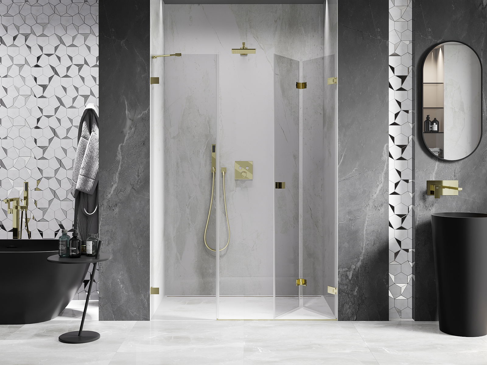 Mexen Lunar-F sprchové dveře skládací pravé 115 cm, průhledné, zlaté - 836S-115-050-50-00-P