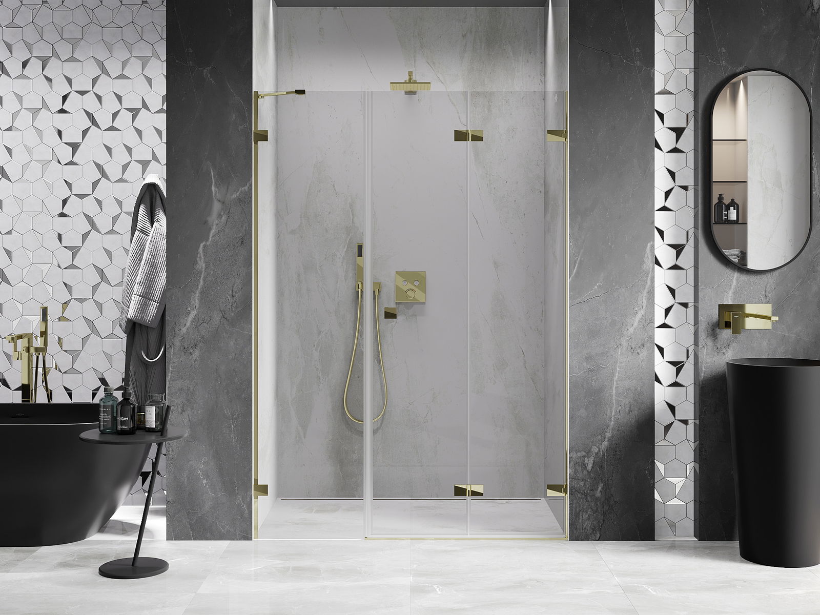 Mexen Lunar-F skládací sprchové dveře pravé 130 cm, transparentní, zlaté - 836S-130-050-50-00-P
