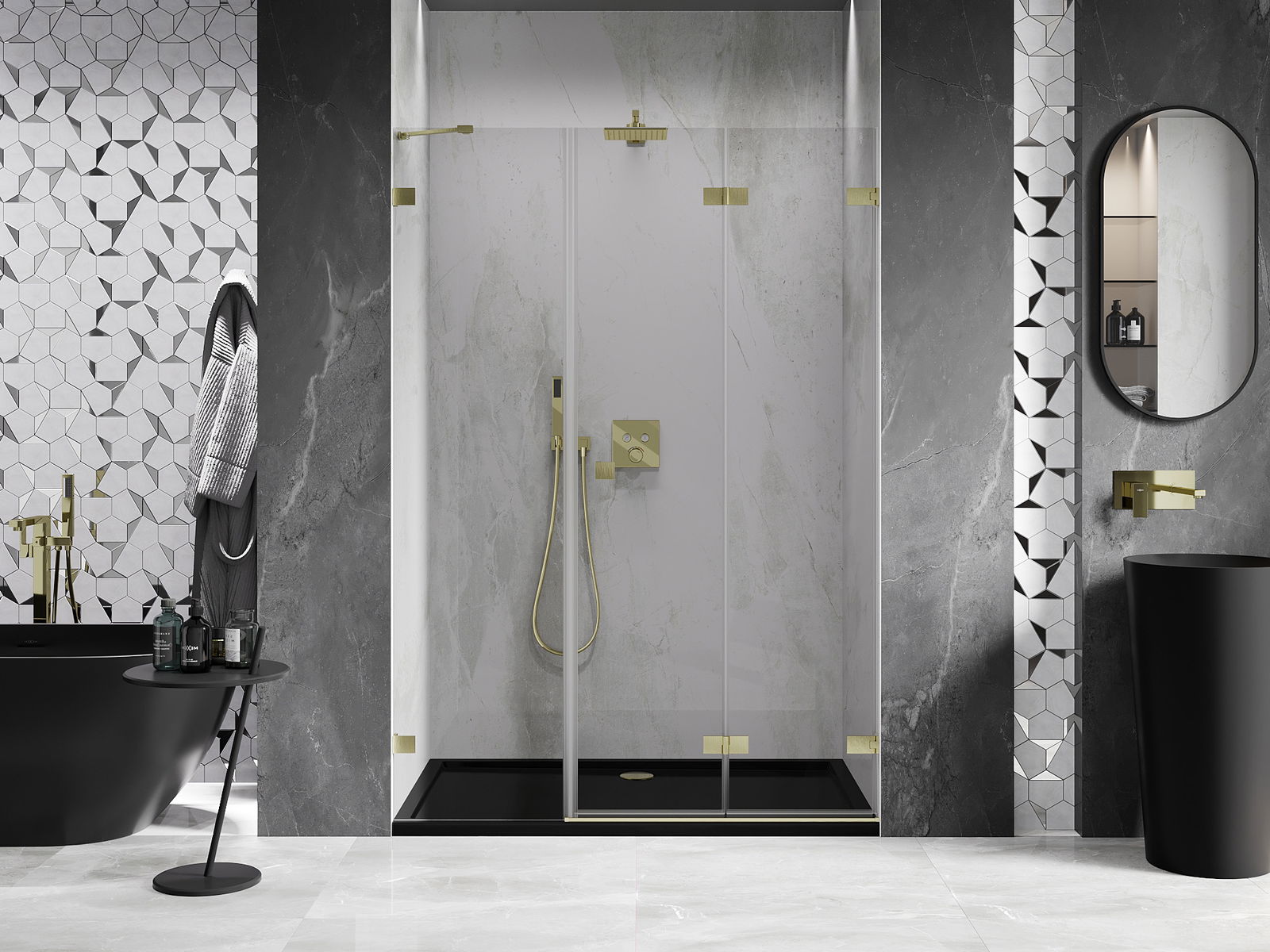 Mexen Lunar-F sprchové dveře skládací pravé 130 cm, transparentní, zlaté kartáčované - 836S-130-050-55-00-P