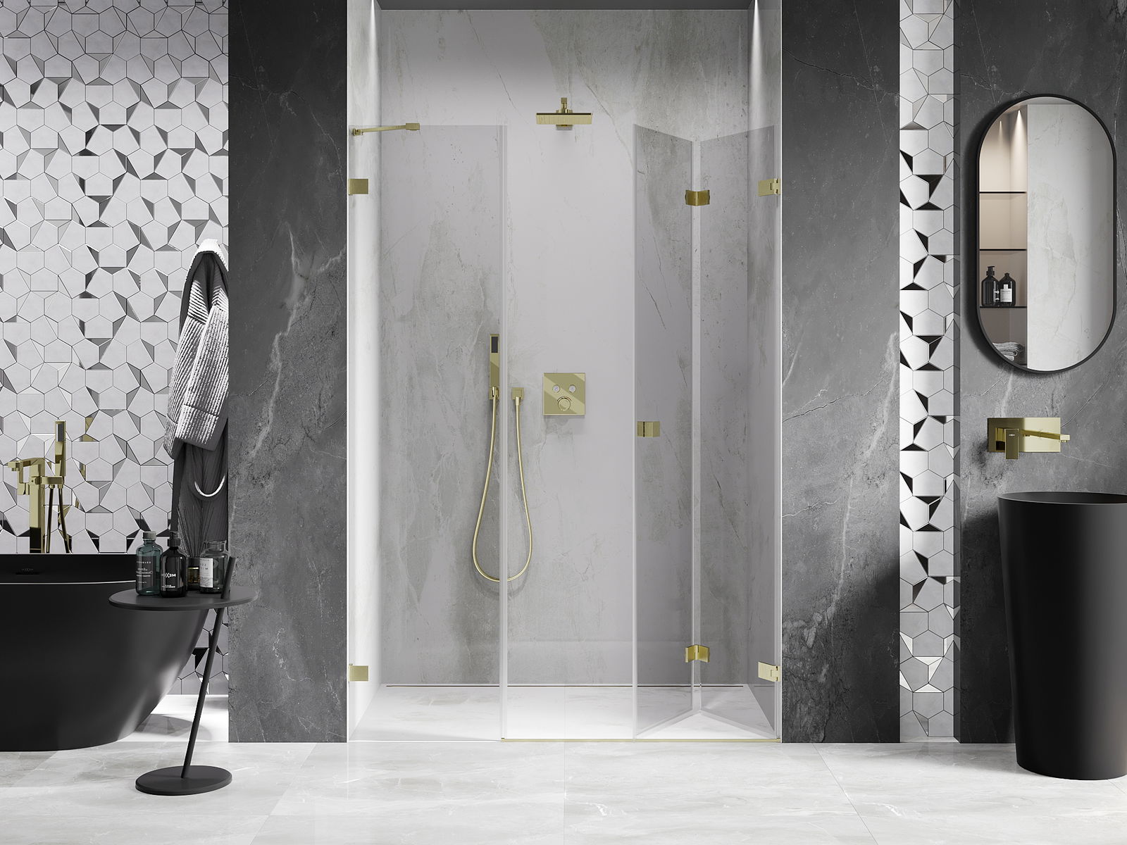 Mexen Lunar-F skládací sprchové dveře pravé 145 cm, transparentní, zlaté kartáčované - 836S-145-050-55-00-P