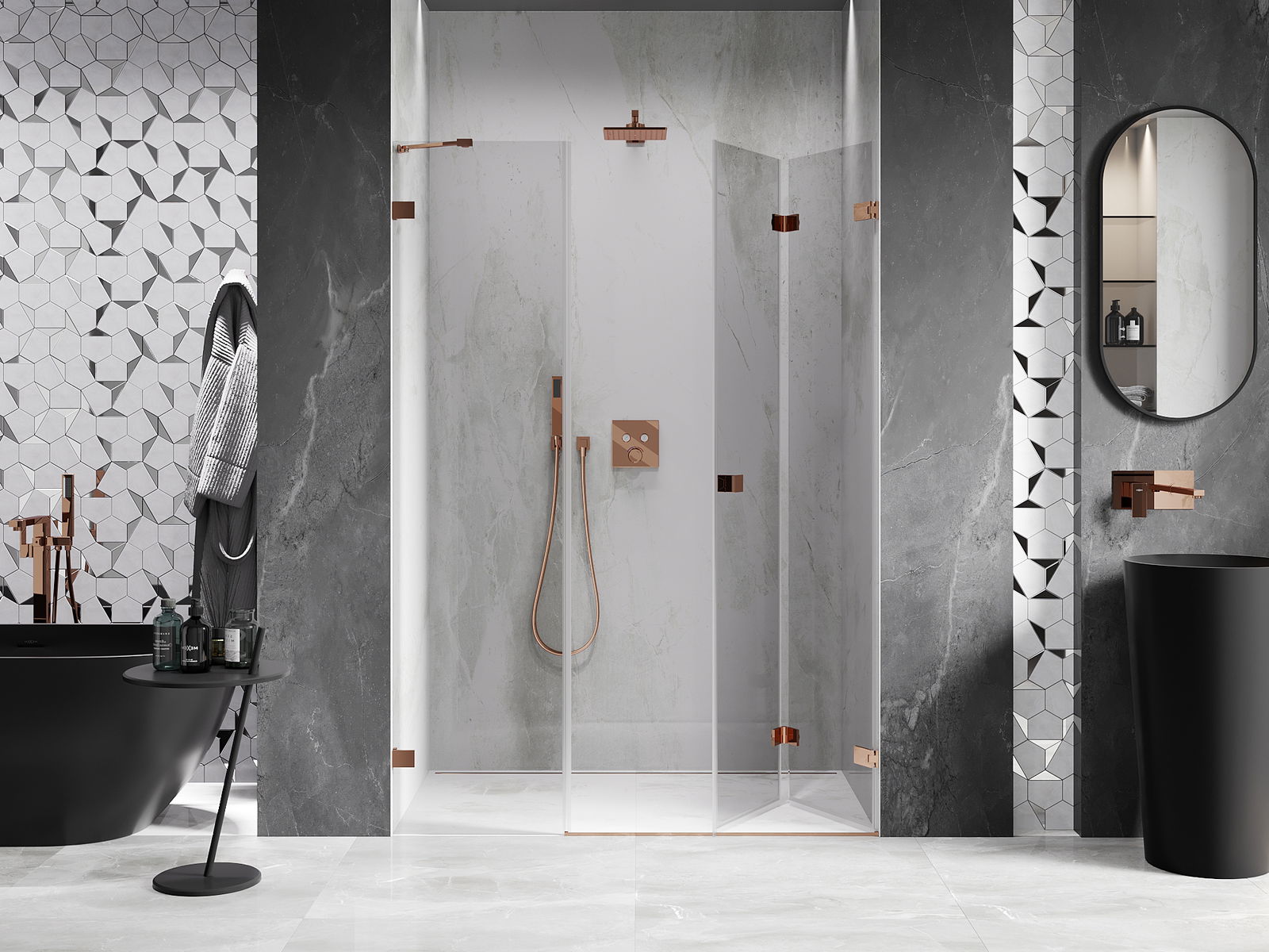 Mexen Lunar-F skládací sprchové dveře pravé 130 cm, transparentní, růžové zlato - 836S-130-050-60-00-P