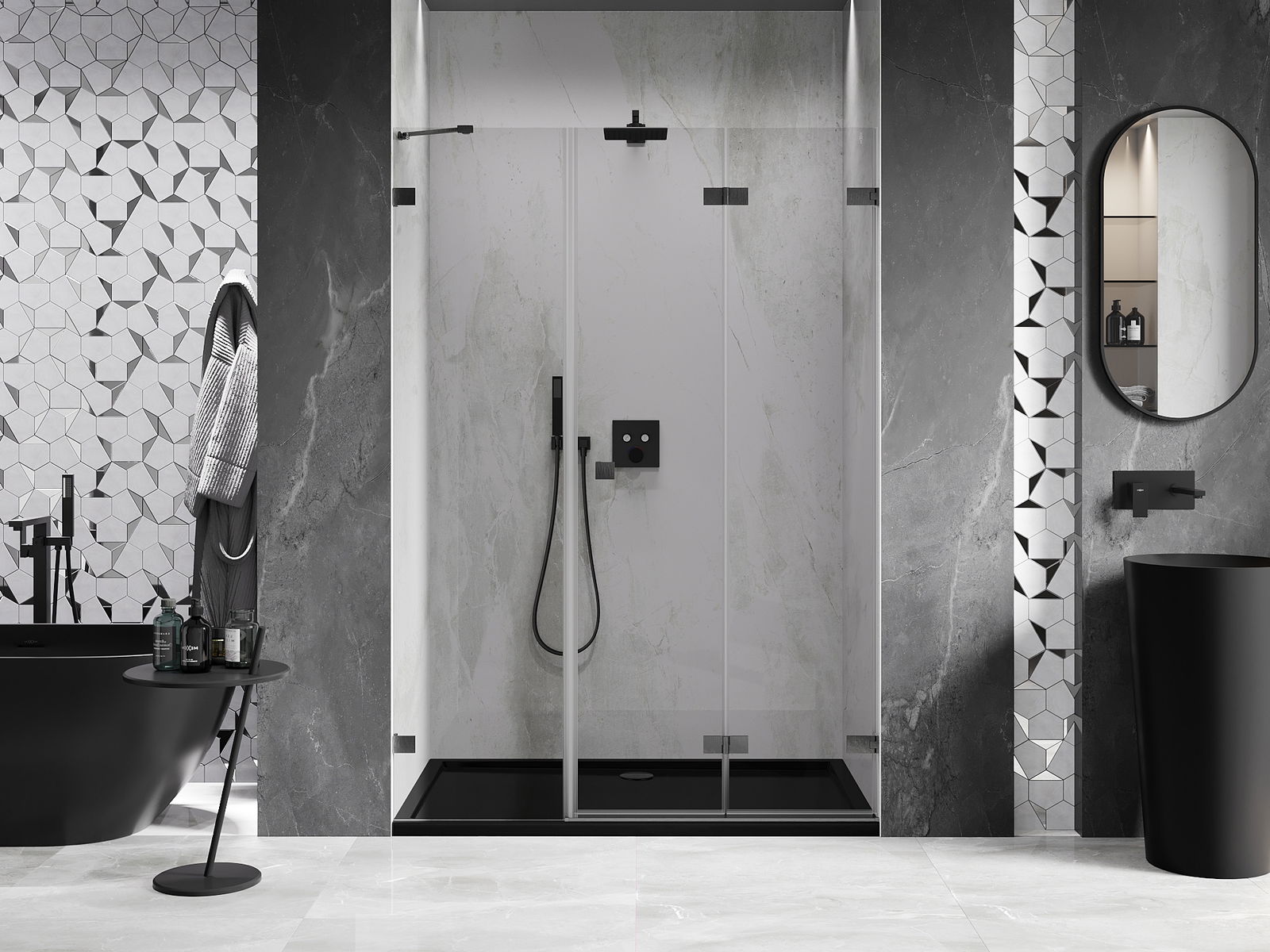 Možnost skládání dveří, jak dovnitř, tak ven, umožňuje získat více prostoru při nepoužívání sprchy. Je to ideální řešení pro menší koupelny, maximálně využívající dostupný prostor.
