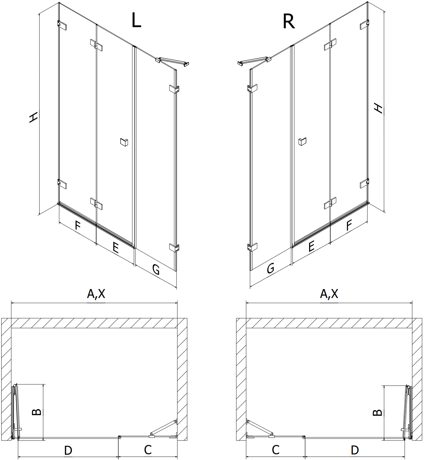 Možnost skládání dveří, jak dovnitř, tak ven, umožňuje získat více prostoru při nepoužívání sprchy. Je to ideální řešení pro menší koupelny, maximálně využívající dostupný prostor.