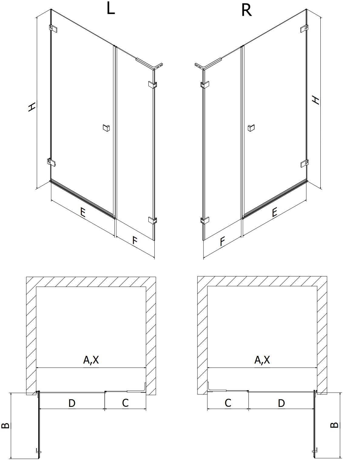 Tloušťka skla: dveře 6 mm, stěna 8 mm