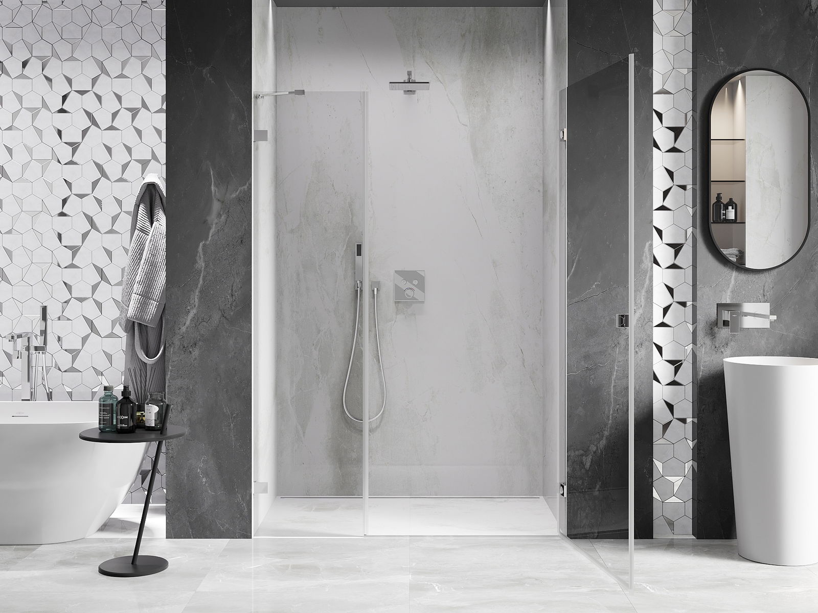 Otevírací dveře umožňují maximální svobodu při používání. Mají pevné panty vyrobené z odolného materiálu, které se snadno čistí a umožňují snadný přístup do interiéru kabiny.