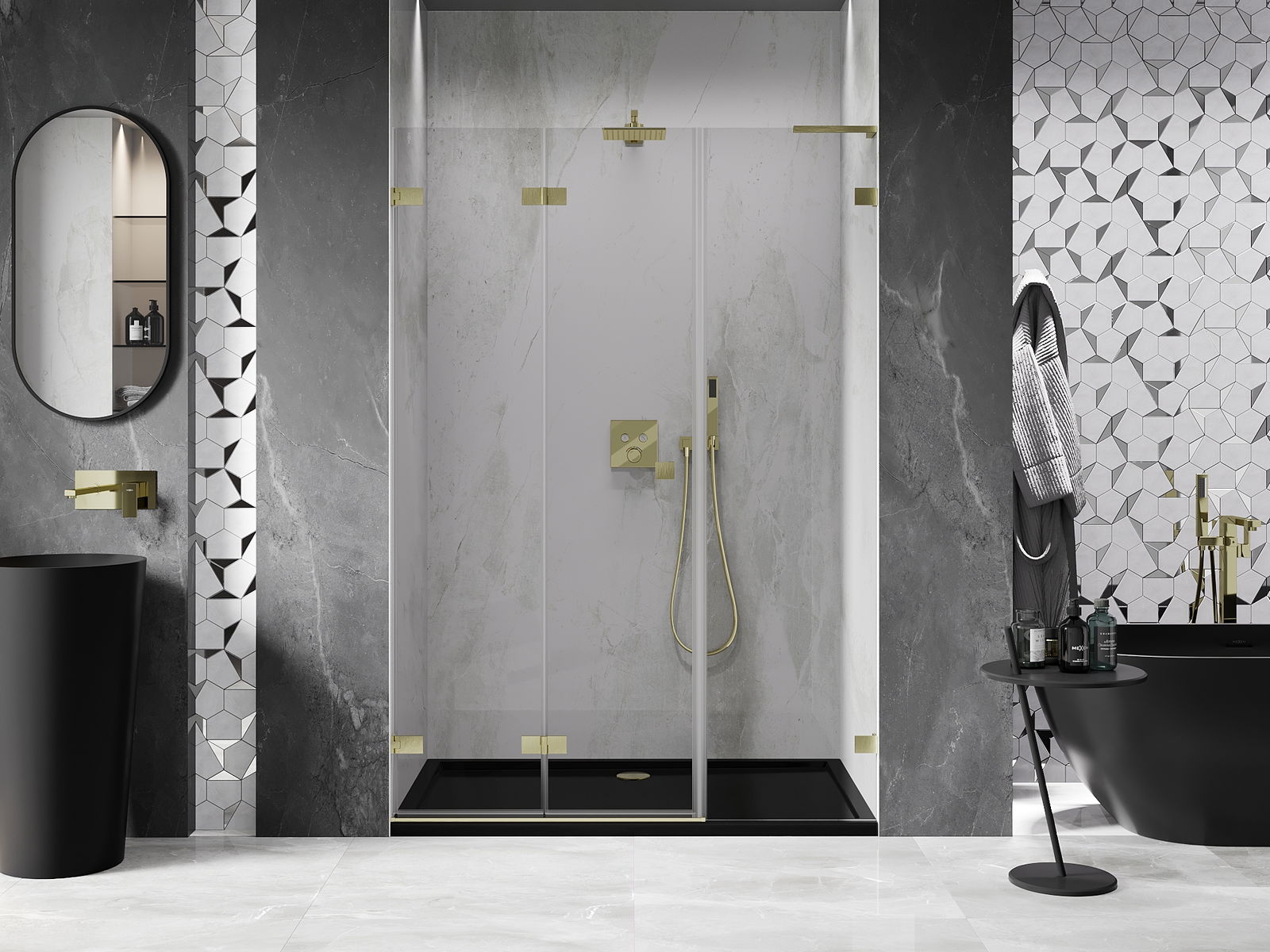 Možnost skládání dveří, jak dovnitř, tak ven, umožňuje získat více prostoru při nepoužívání sprchy. Je to ideální řešení pro menší koupelny, maximálně využívající dostupný prostor.
