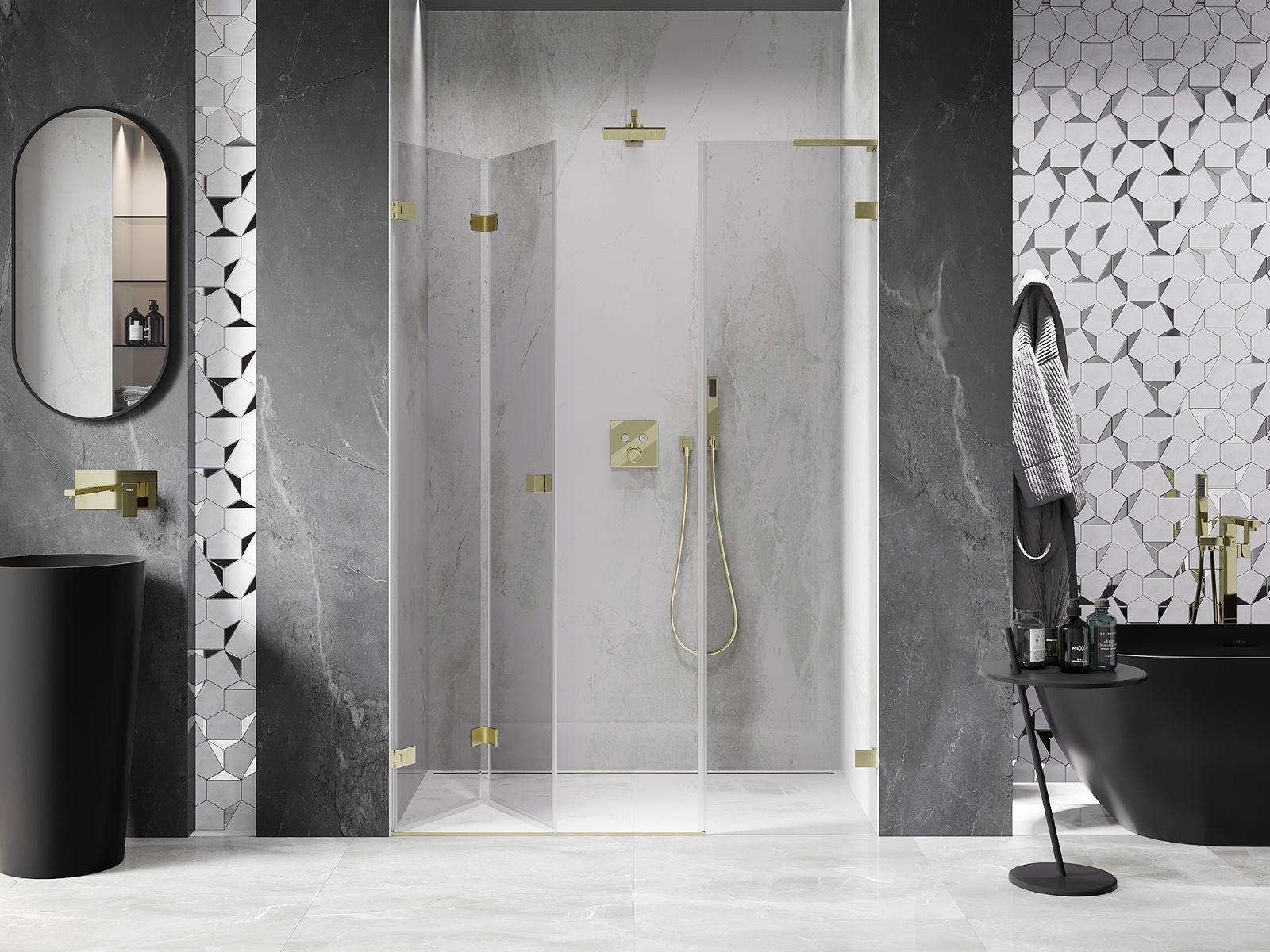 Mexen Lunar-F L skládací sprchové dveře levé 120 cm, transparentní, zlatý kartáčovaný - 836SL-120-050-55-00-L