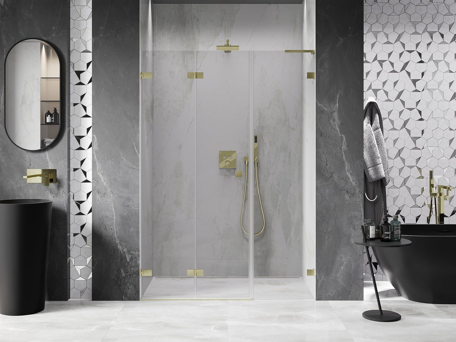 Mexen Lunar-F L skládací sprchové dveře levé 135 cm, transparentní, zlaté kartáčované - 836SL-135-050-55-00-L