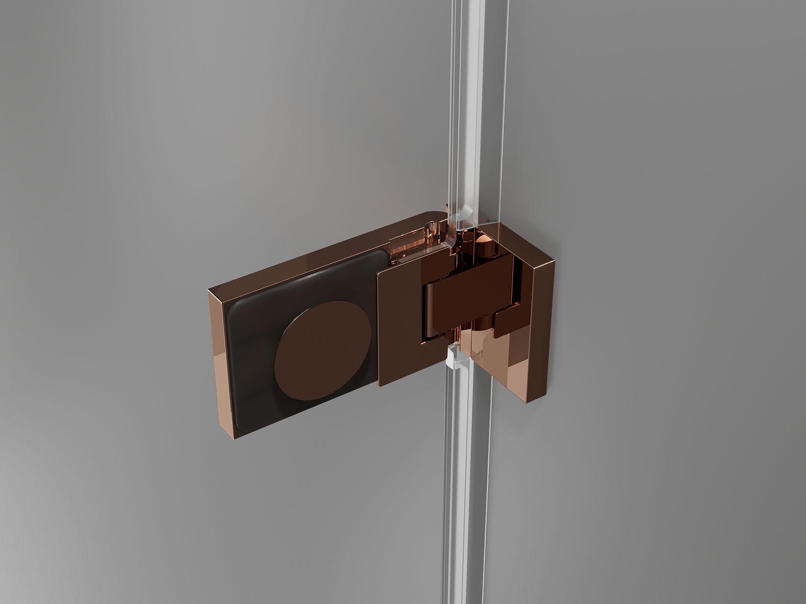 Mosazné svorky a panty zapuštěné do skleněné plochy