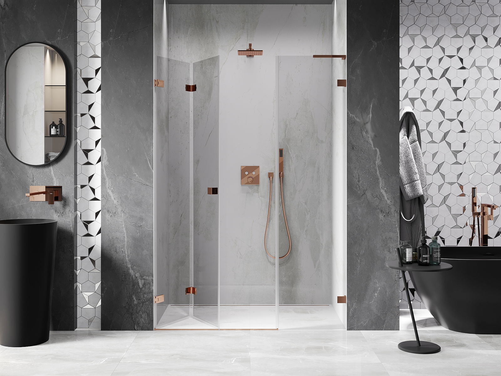 Možnost skládání dveří, jak dovnitř, tak ven, umožňuje získat více prostoru při nepoužívání sprchy. Je to ideální řešení pro menší koupelny, maximálně využívající dostupný prostor.