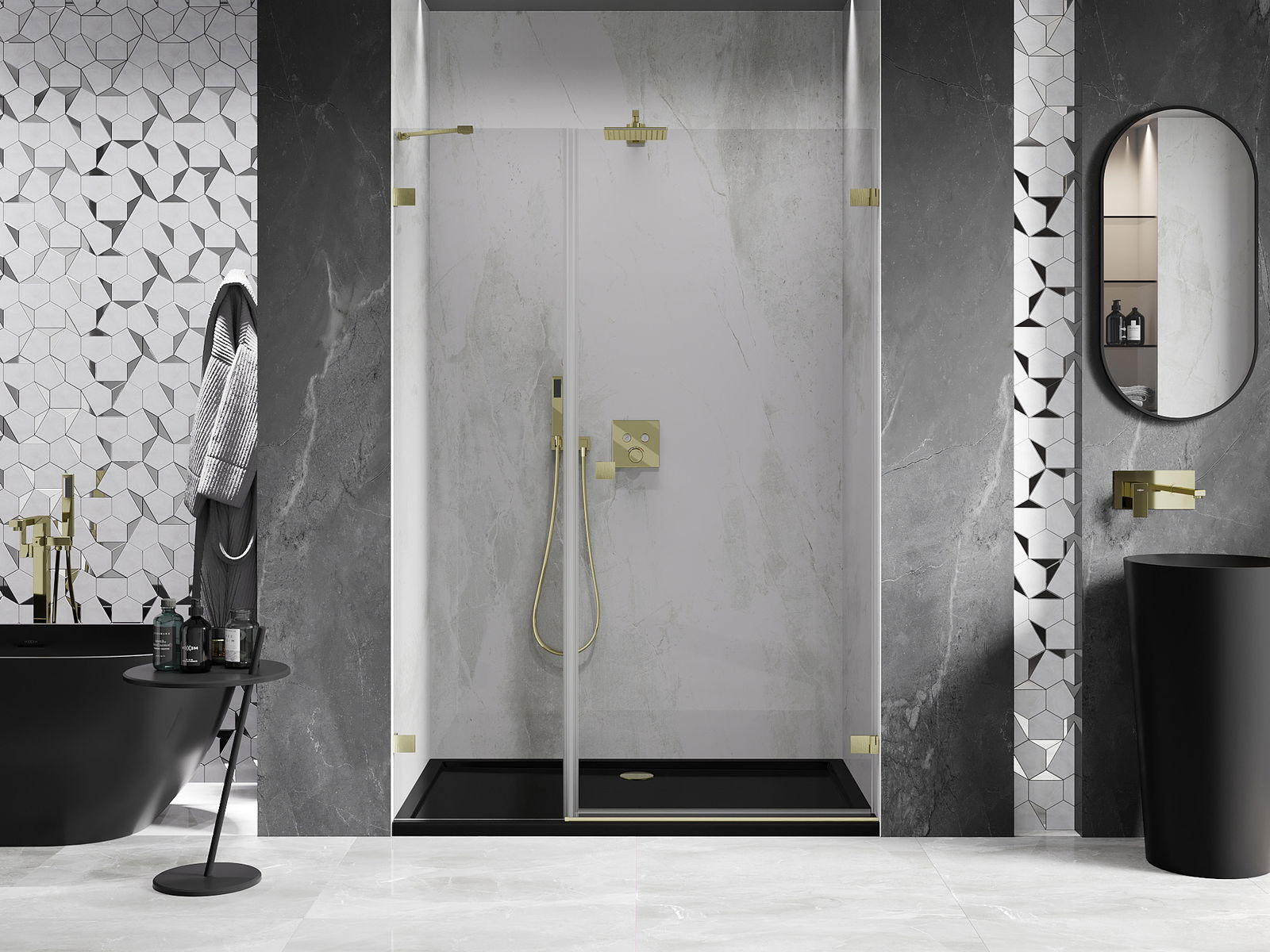 Mexen Lunar-B sprchové dveře otočné pravé 140 cm, průhledné, zlaté kartáčované - 832S-140-050-55-00-P
