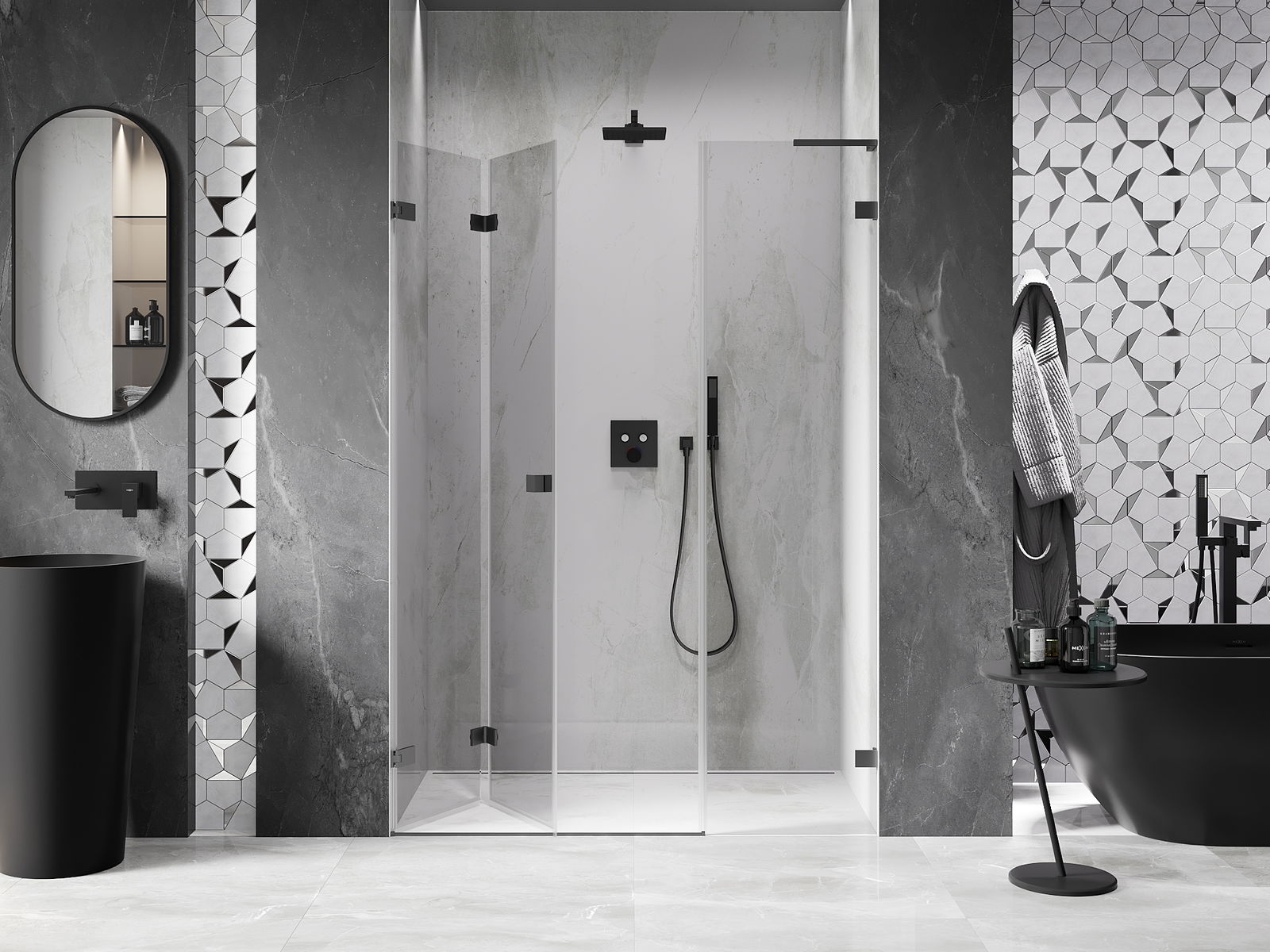 Možnost skládání dveří, jak dovnitř, tak ven, umožňuje získat více prostoru při nepoužívání sprchy. Je to ideální řešení pro menší koupelny, maximálně využívající dostupný prostor.