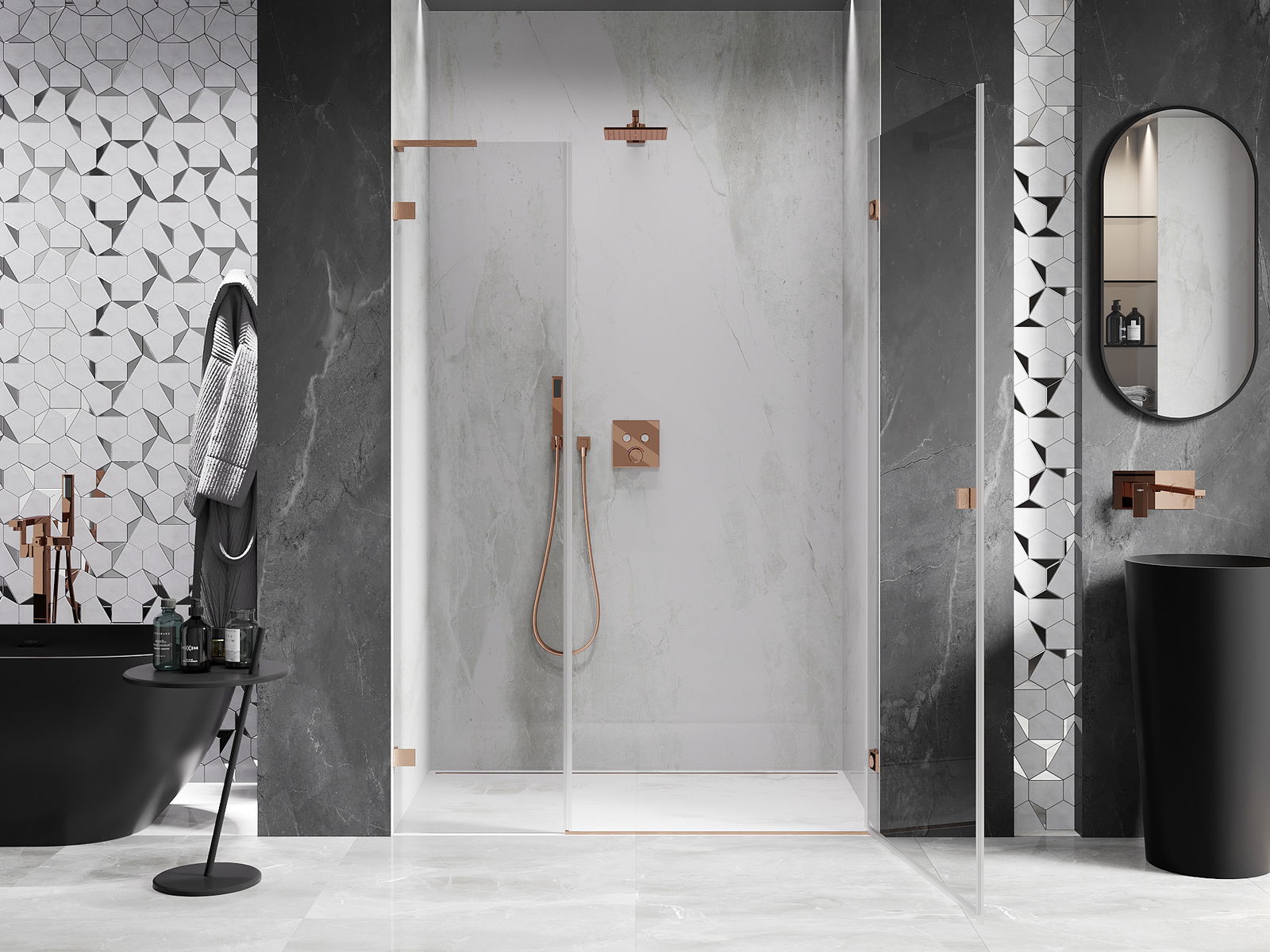 Mexen Lunar-B L sprchové dveře otočné pravé 145 cm, transparentní, kartáčovaná měď - 832SL-145-050-65-00-P