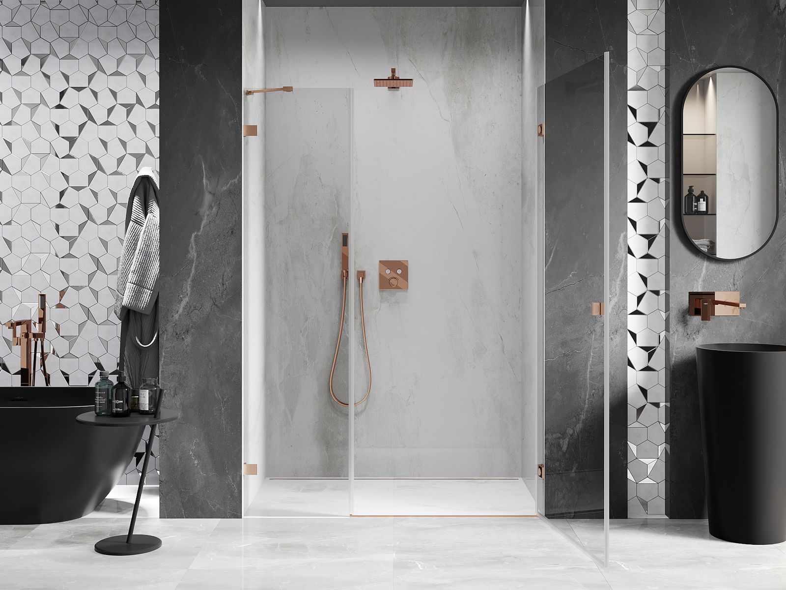 Mexen Lunar-B sprchové dveře, pravé 140 cm, průhledné, kartáčovaná měď - 832S-140-050-65-00-P
