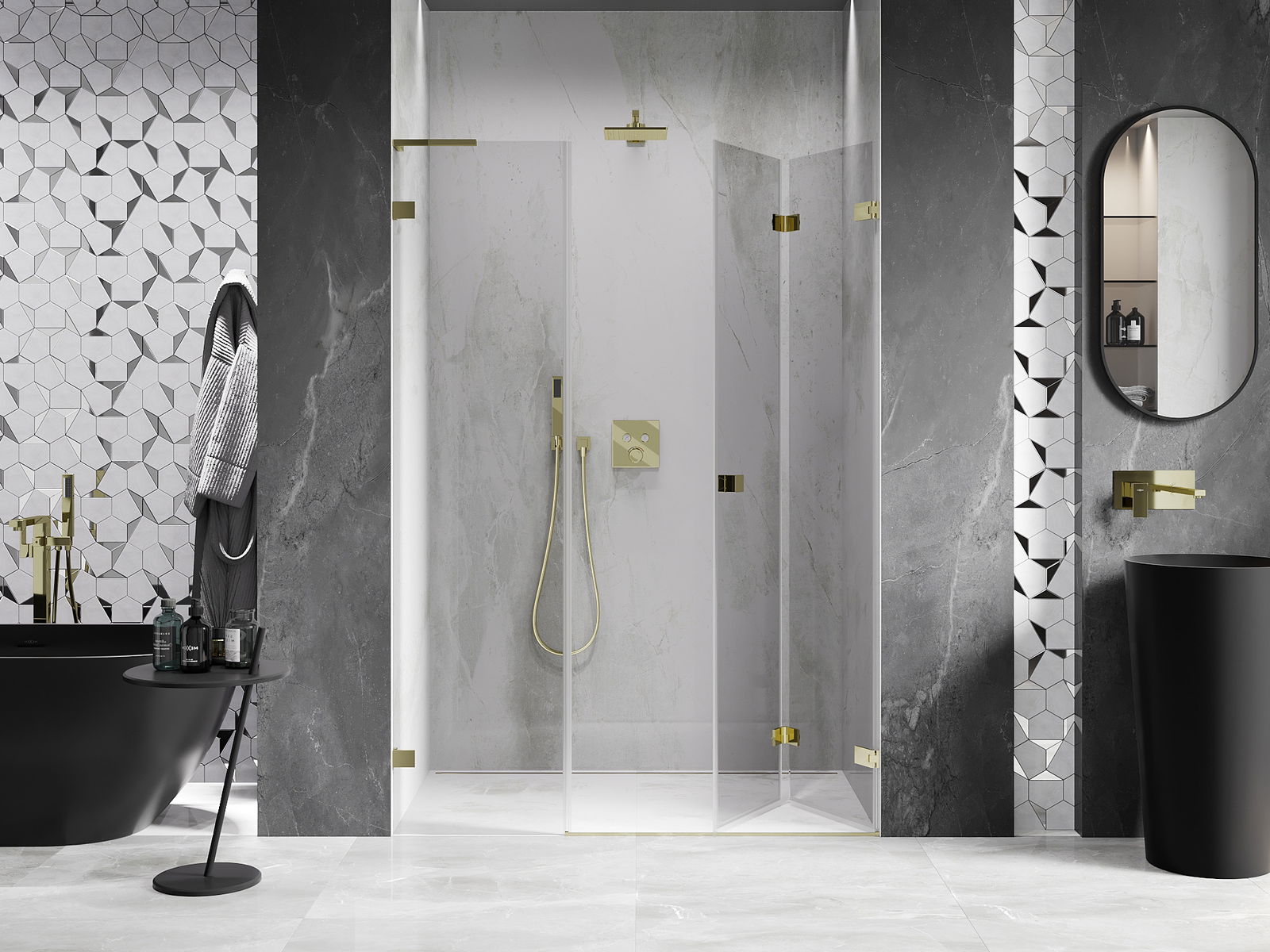Mexen Lunar-F L pravé skládací sprchové dveře 135 cm, transparentní, zlaté - 836SL-135-050-50-00-P