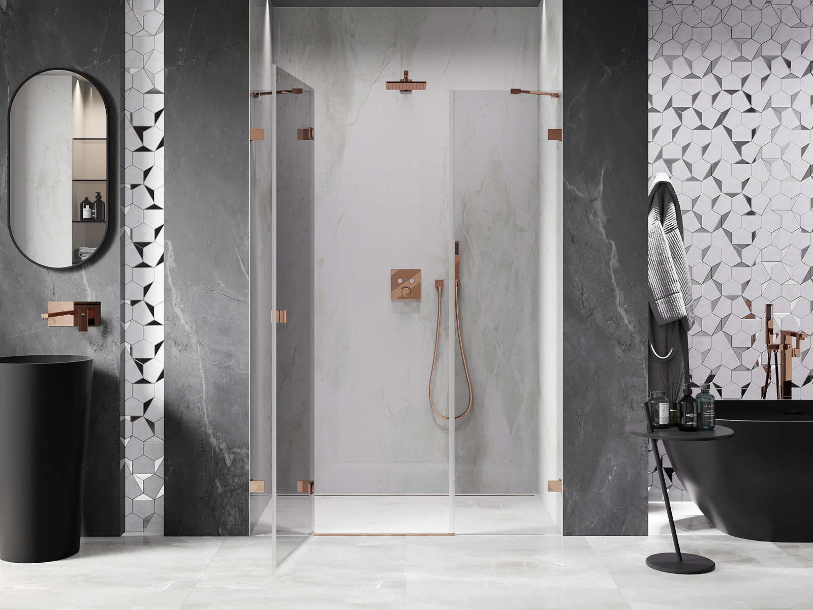 Mexen Lunar sprchové dveře výklopné levé 135 cm, transparentní, růžové zlato - 834S-135-050-60-00-L