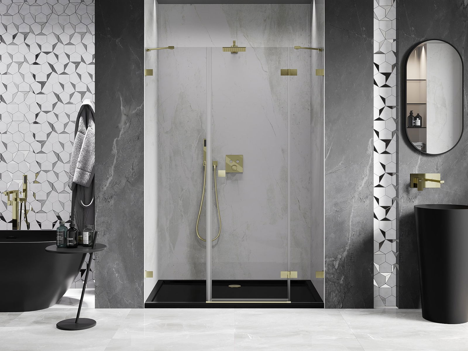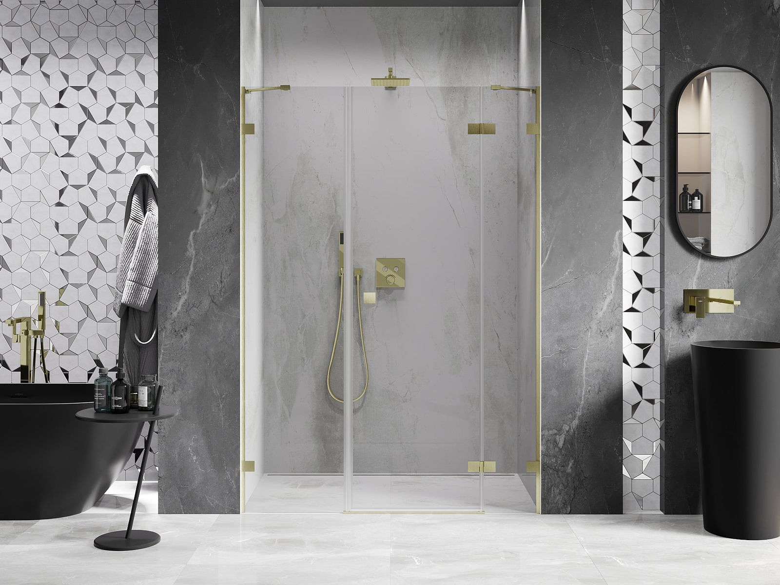 Mexen Lunar sprchové dveře otočné pravé 135 cm, transparentní, zlaté kartáčované - 834S-135-050-55-00-P