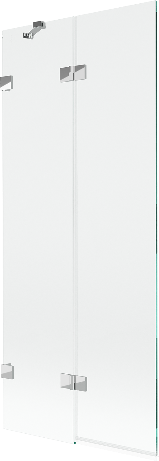 Paravan vyrobený ze dvou křídel s možností složení. Takové řešení umožňuje ušetřit více místa v koupelně a umožňuje volné využití zbývajícího prostoru, když nepoužíváme koupací zónu.