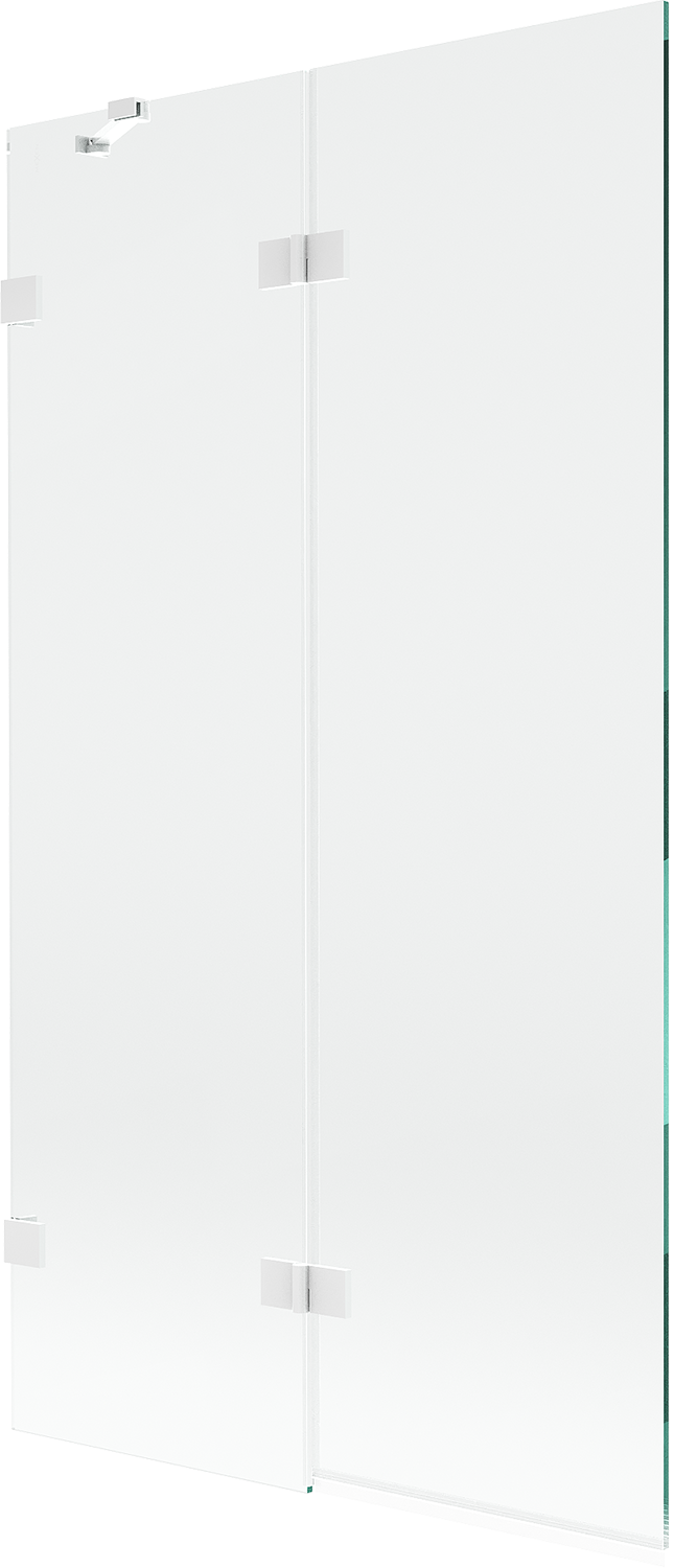 Paravan vyrobený ze dvou křídel s možností složení. Takové řešení umožňuje ušetřit více místa v koupelně a umožňuje volné využití zbývajícího prostoru, když nepoužíváme koupací zónu.