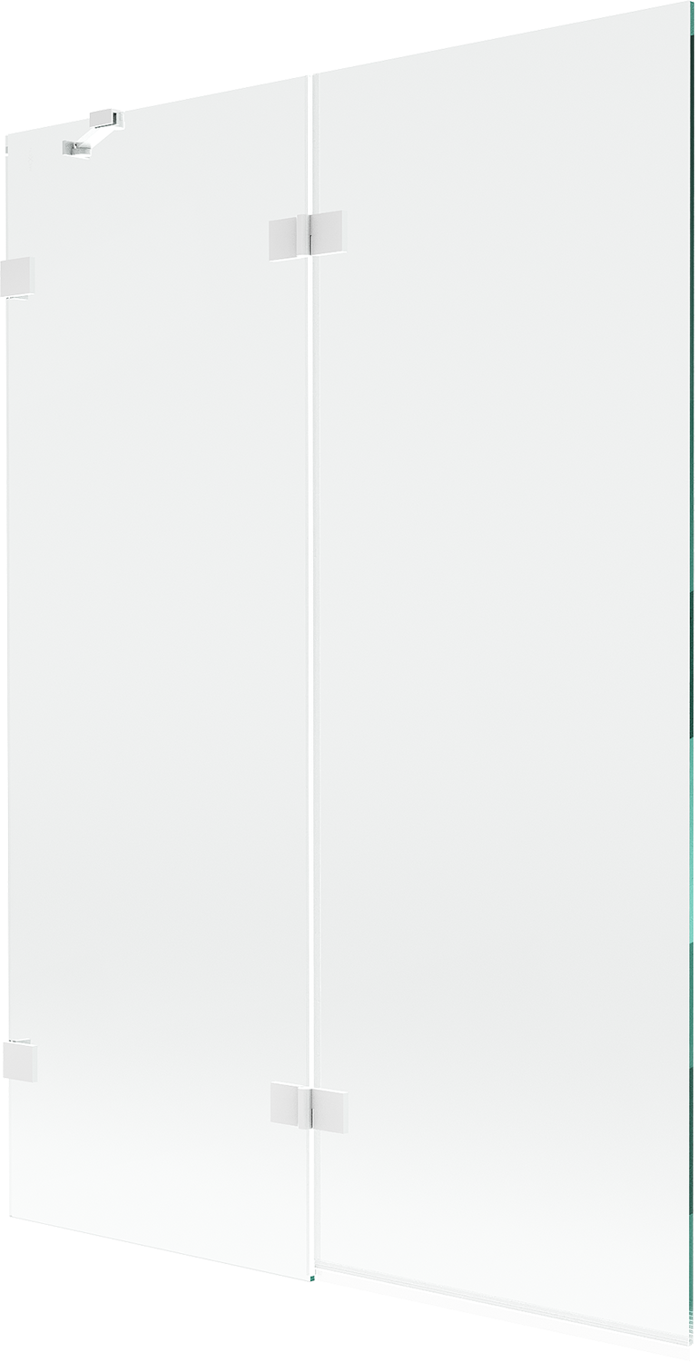 Paravan vyrobený ze dvou křídel s možností složení. Takové řešení umožňuje ušetřit více místa v koupelně a umožňuje volné využití zbývajícího prostoru, když nepoužíváme koupací zónu.