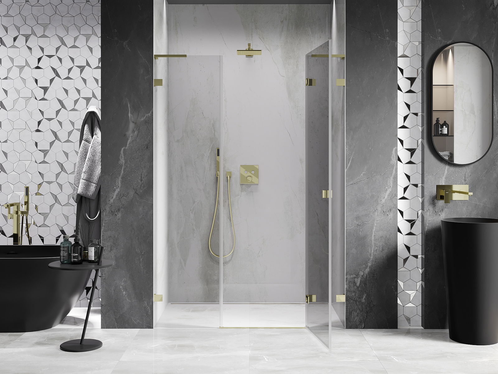 • Mexen Lunar L sprchové dveře výklopné pravé 135 cm, transparentní, zlaté - 834SL-135-050-50-00-P