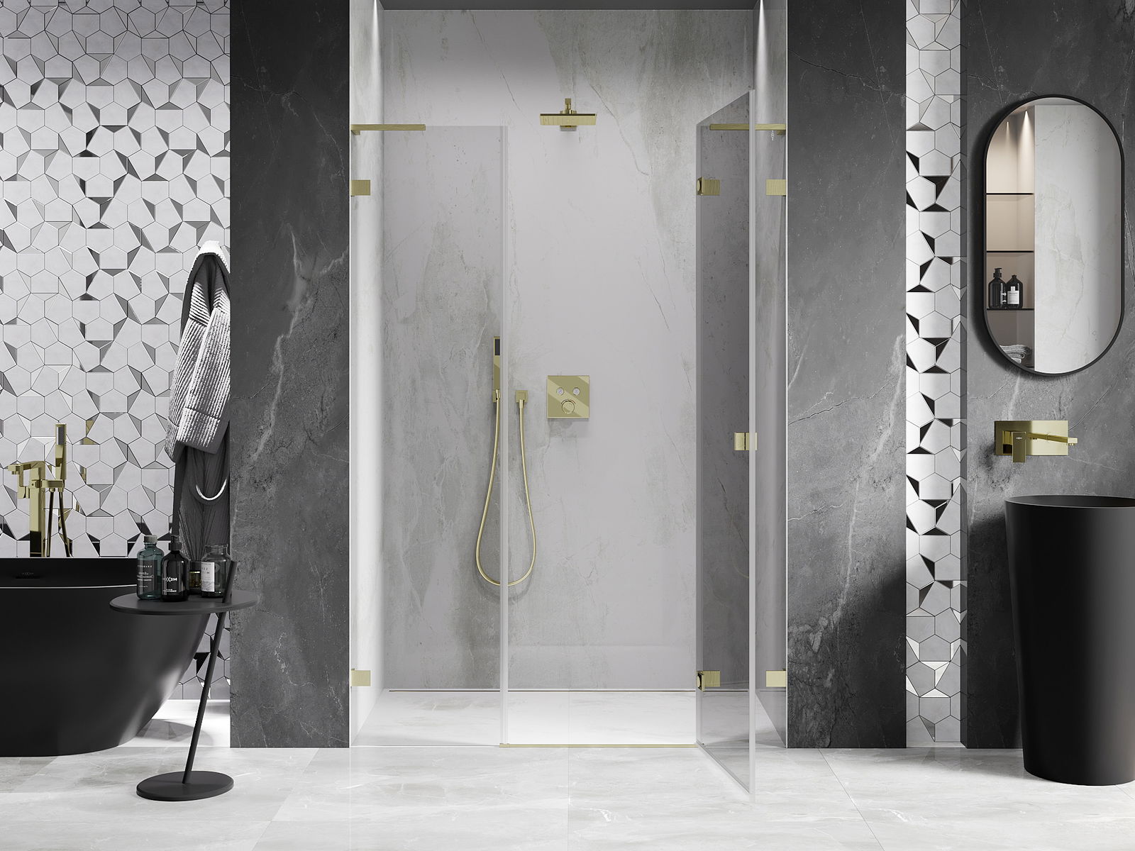 • Mexen Lunar L sprchové dveře otočné pravé 125 cm, transparentní, zlaté kartáčované - 834SL-125-050-55-00-P
