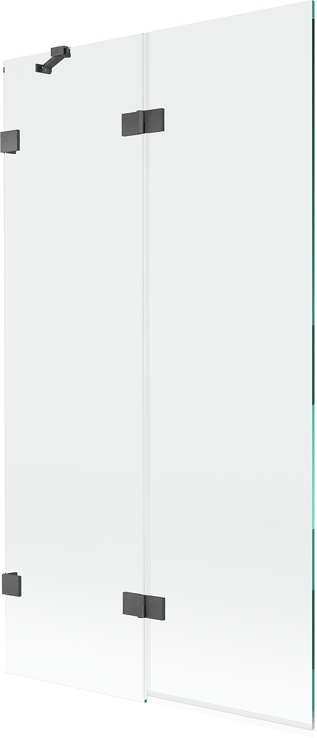 Paravan vyrobený ze dvou křídel s možností složení. Takové řešení umožňuje ušetřit více místa v koupelně a umožňuje volné využití zbývajícího prostoru, když nepoužíváme koupací zónu.