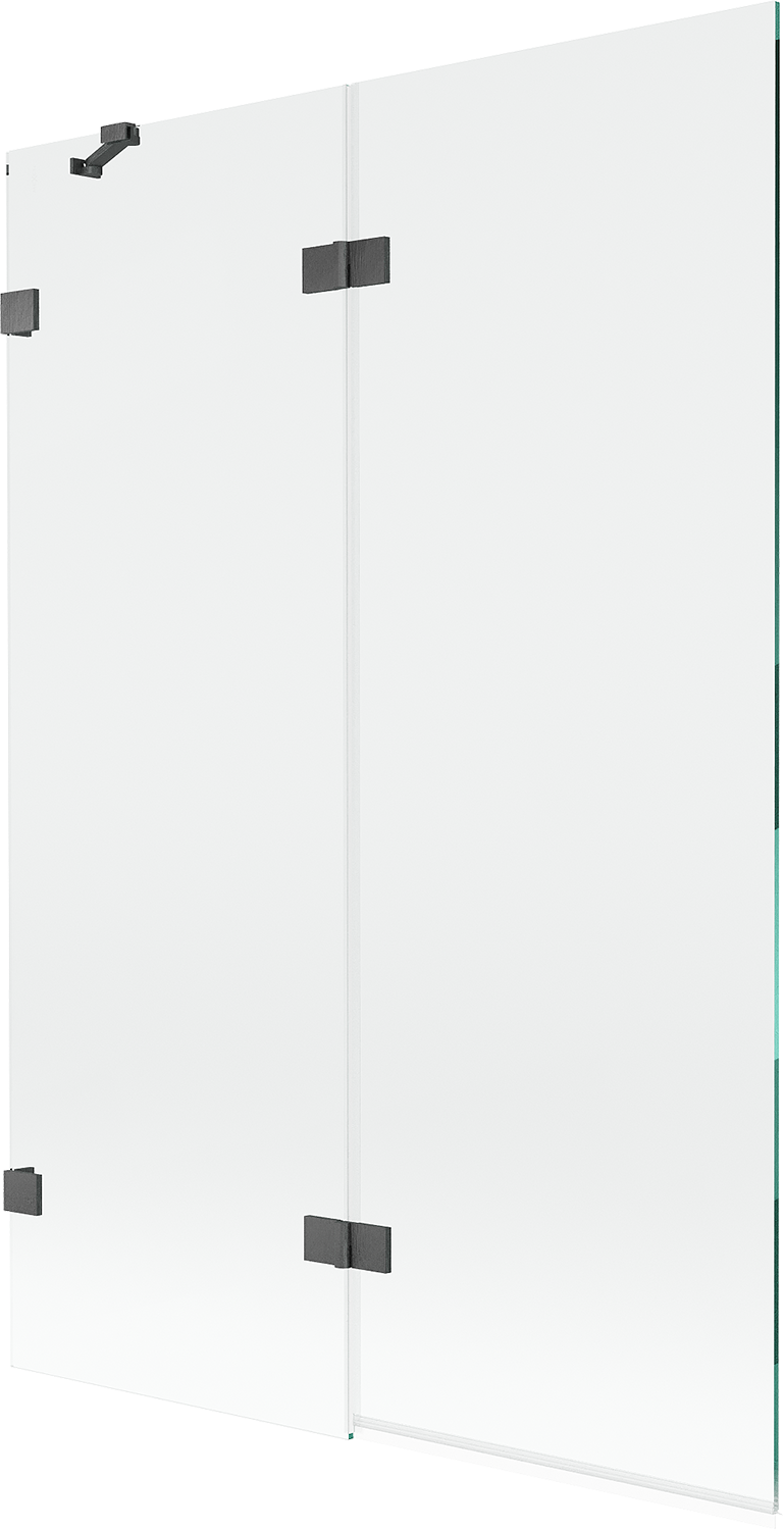 Paravan vyrobený ze dvou křídel s možností složení. Takové řešení umožňuje ušetřit více místa v koupelně a umožňuje volné využití zbývajícího prostoru, když nepoužíváme koupací zónu.