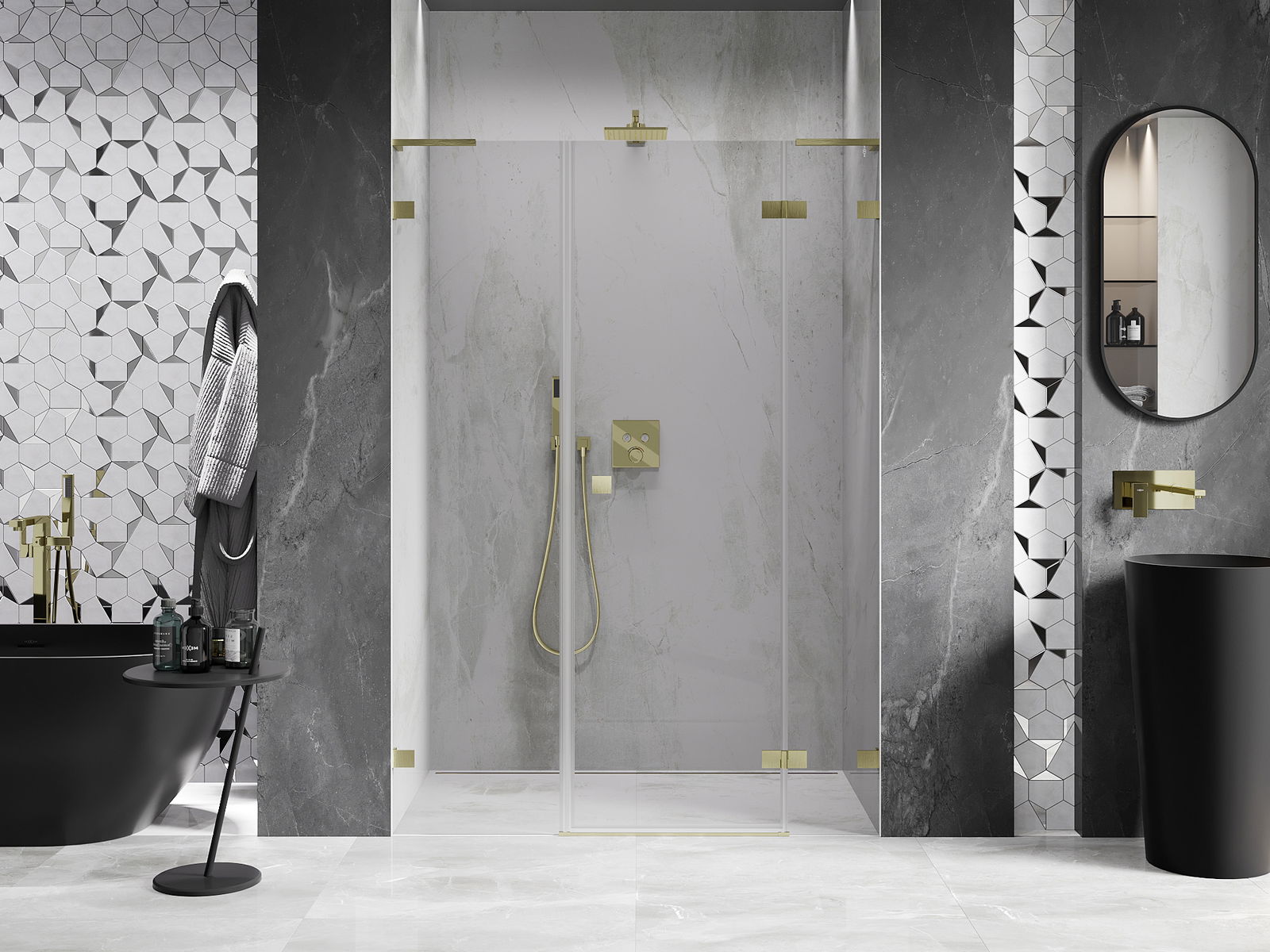 Spony a závěsy byly vyrobeny z velmi odolné mosazi a navíc vytvářejí zarovnanou plochu skla. Je to vynikající volba, která kombinuje eleganci, odolnost a moderní design. Díky těmto řešením získává sprcha na estetice a zároveň usnadňuje udržování čistoty.