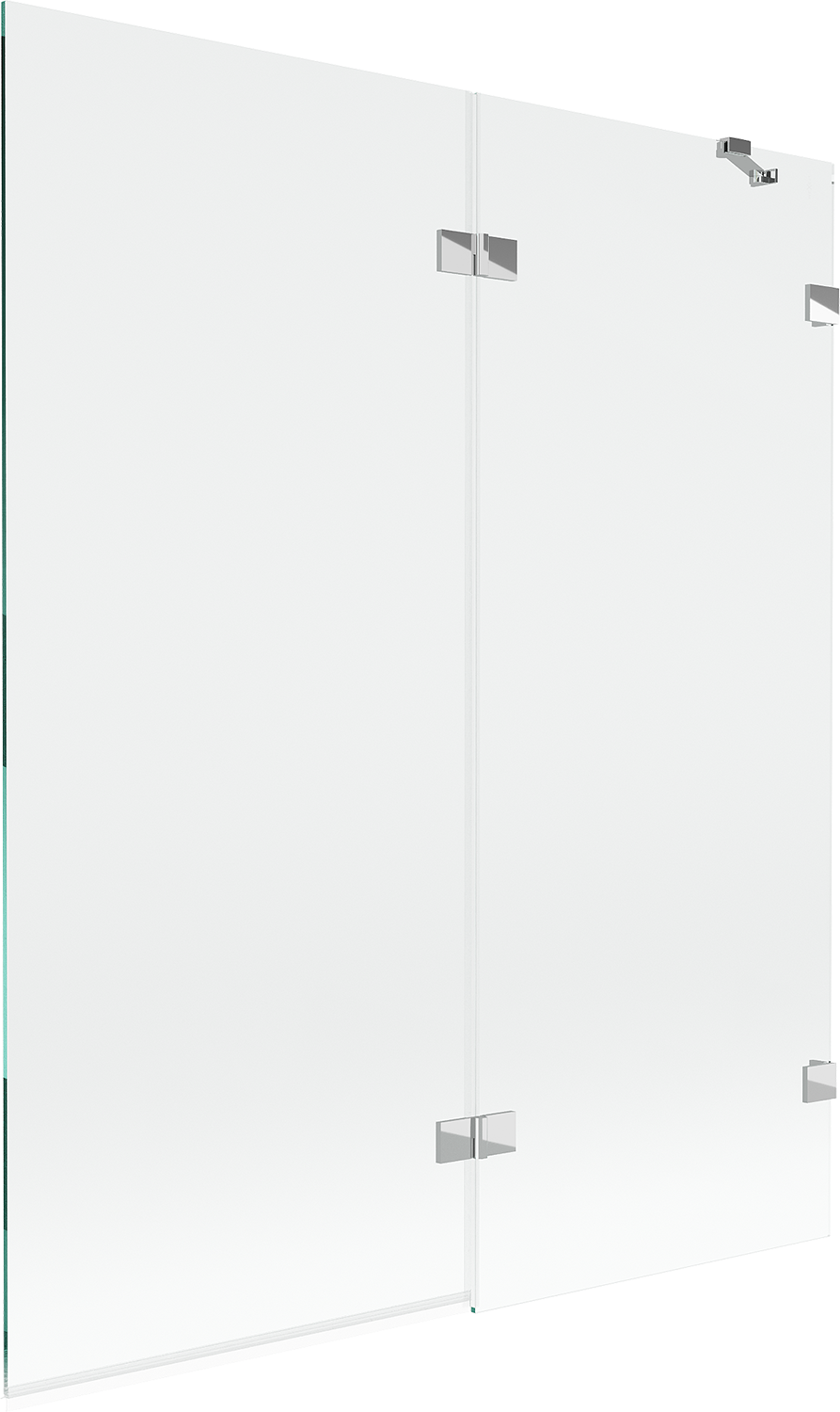 Paravan vyrobený ze dvou křídel s možností složení. Takové řešení umožňuje ušetřit více místa v koupelně a umožňuje volné využití zbývajícího prostoru, když nepoužíváme koupací zónu.