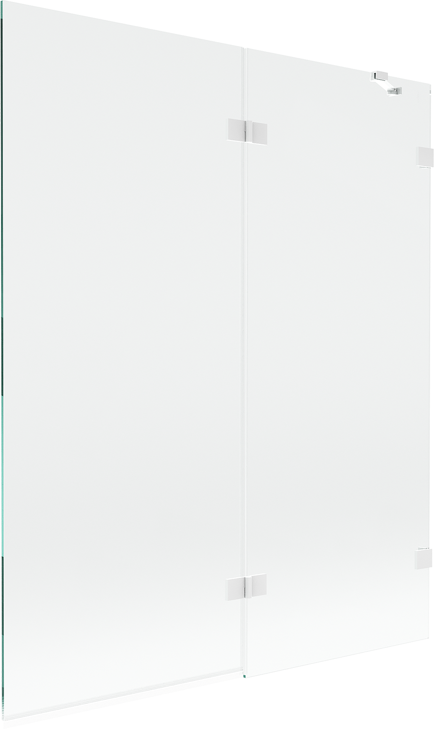 Paravan vyrobený ze dvou křídel s možností složení. Takové řešení umožňuje ušetřit více místa v koupelně a umožňuje volné využití zbývajícího prostoru, když nepoužíváme koupací zónu.