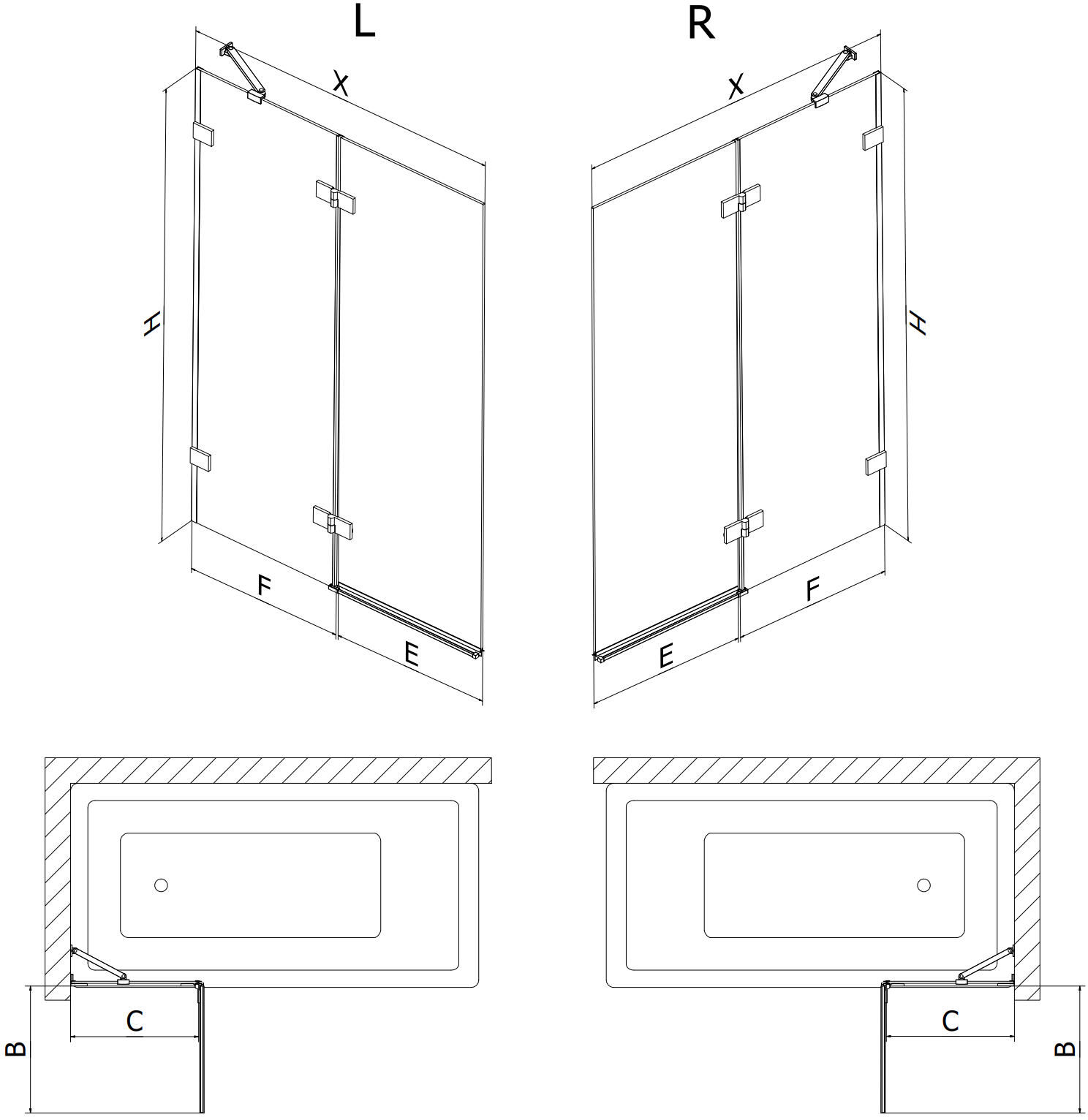 Paravan vyrobený ze dvou křídel s možností složení. Takové řešení umožňuje ušetřit více místa v koupelně a umožňuje volné využití zbývajícího prostoru, když nepoužíváme koupací zónu.