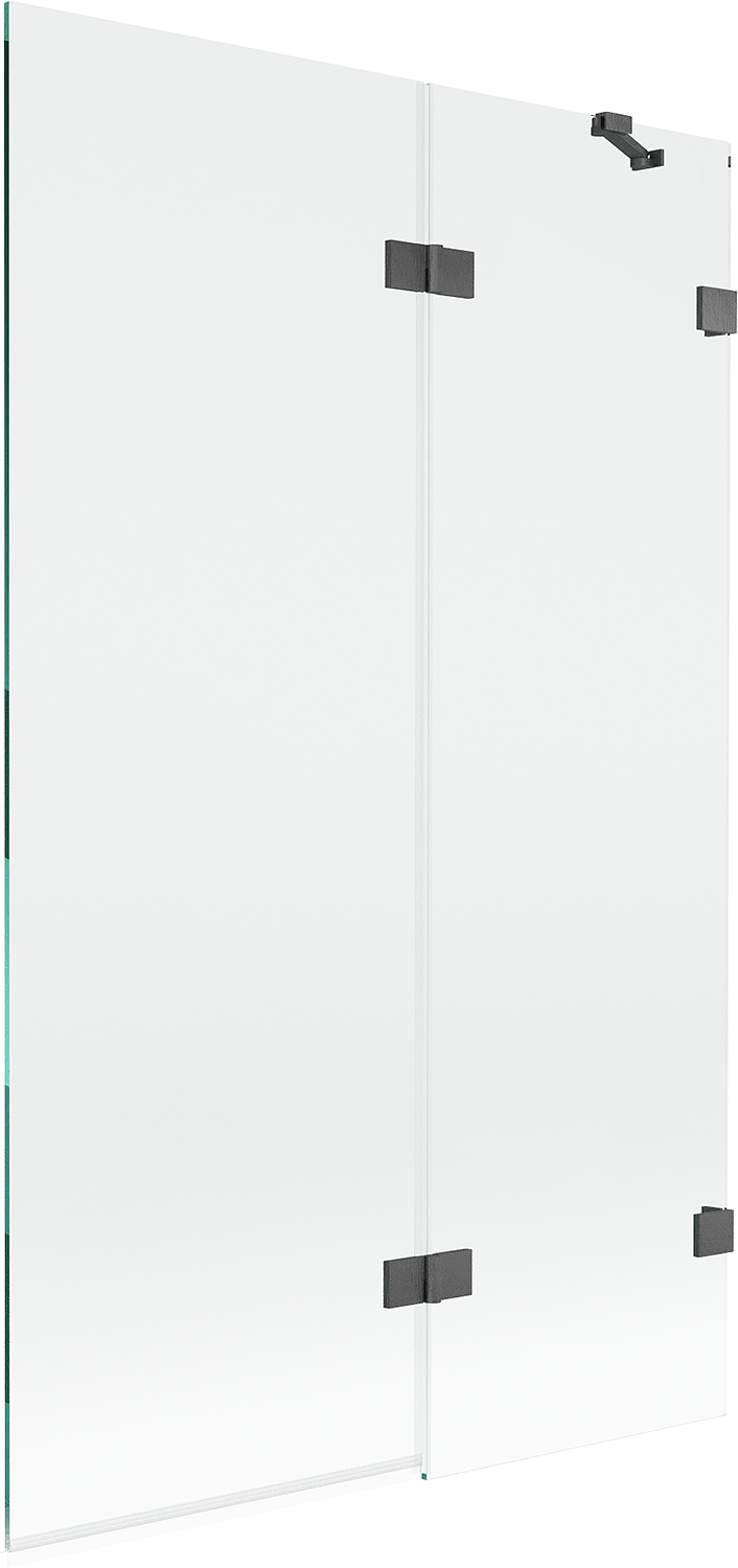Paravan vyrobený ze dvou křídel s možností složení. Takové řešení umožňuje ušetřit více místa v koupelně a umožňuje volné využití zbývajícího prostoru, když nepoužíváme koupací zónu.