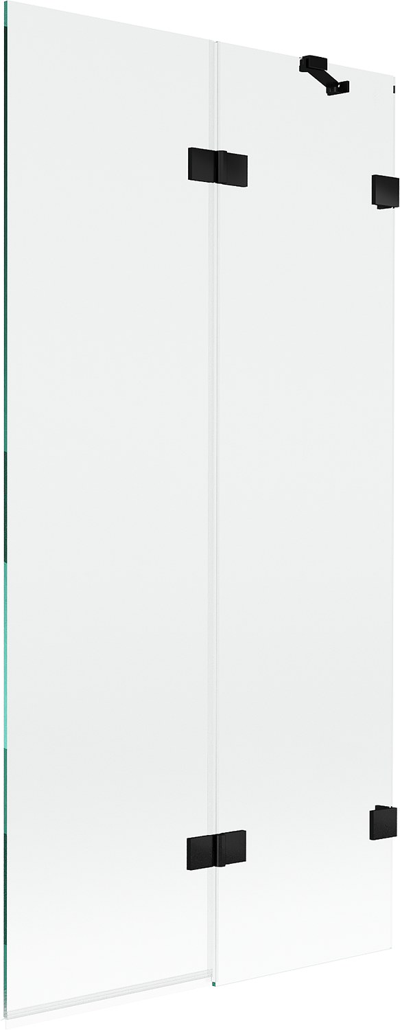 Paravan vyrobený ze dvou křídel s možností složení. Takové řešení umožňuje ušetřit více místa v koupelně a umožňuje volné využití zbývajícího prostoru, když nepoužíváme koupací zónu.