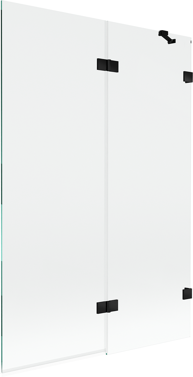 Paravan vyrobený ze dvou křídel s možností složení. Takové řešení umožňuje ušetřit více místa v koupelně a umožňuje volné využití zbývajícího prostoru, když nepoužíváme koupací zónu.