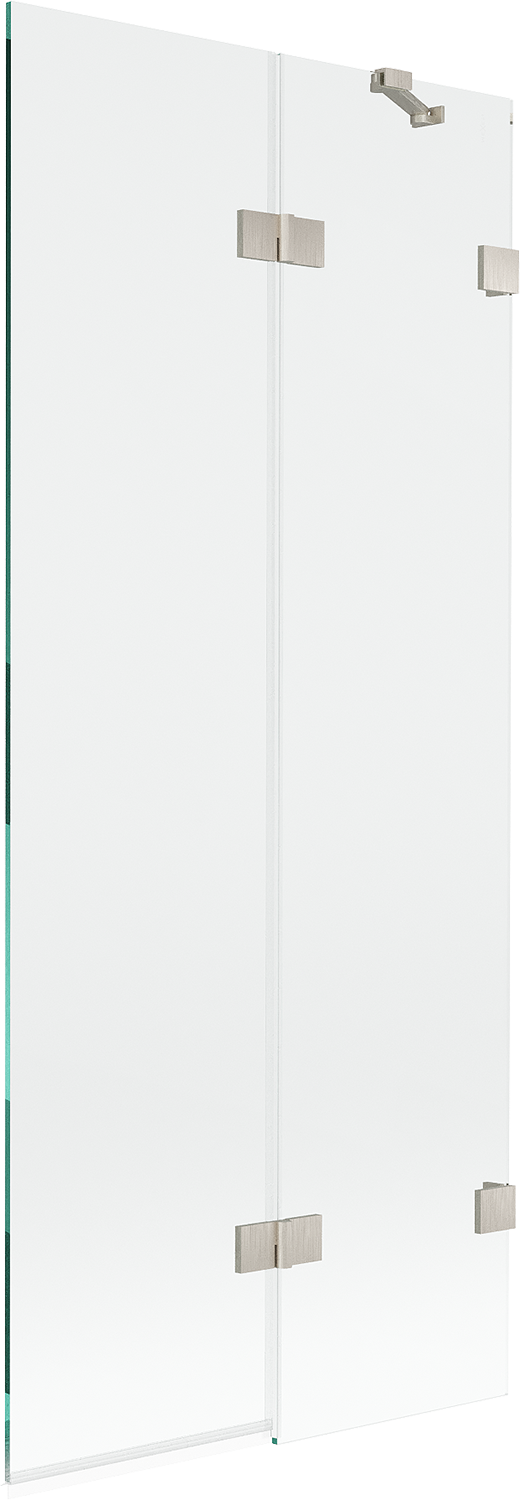Paravan vyrobený ze dvou křídel s možností složení. Takové řešení umožňuje ušetřit více místa v koupelně a umožňuje volné využití zbývajícího prostoru, když nepoužíváme koupací zónu.
