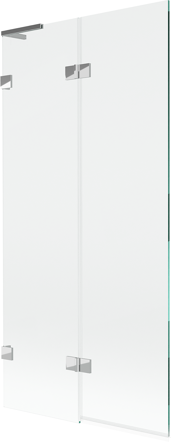 Paravan vyrobený ze dvou křídel s možností složení. Takové řešení umožňuje ušetřit více místa v koupelně a umožňuje volné využití zbývajícího prostoru, když nepoužíváme koupací zónu.