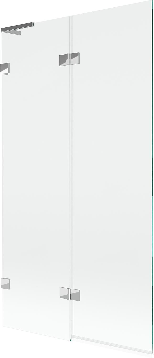Paravan vyrobený ze dvou křídel s možností složení. Takové řešení umožňuje ušetřit více místa v koupelně a umožňuje volné využití zbývajícího prostoru, když nepoužíváme koupací zónu.